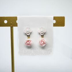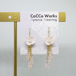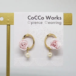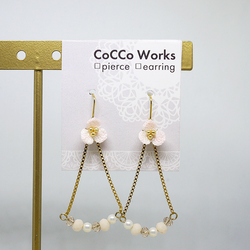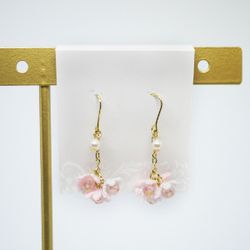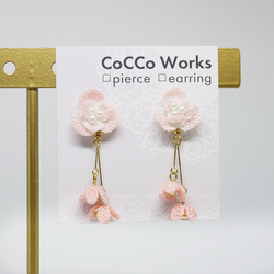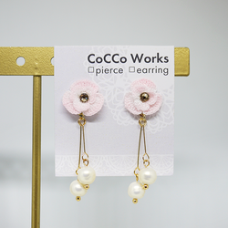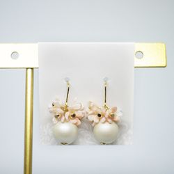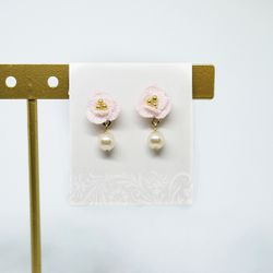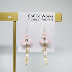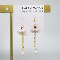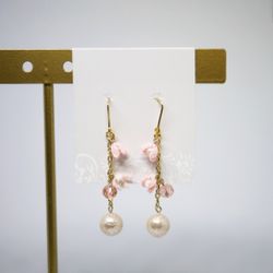 033 フラワーピアス(フックタイプ/薄ピンク×パール)