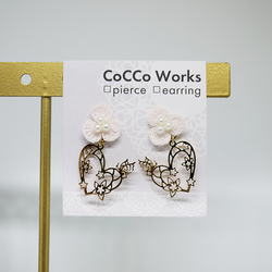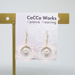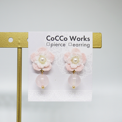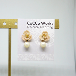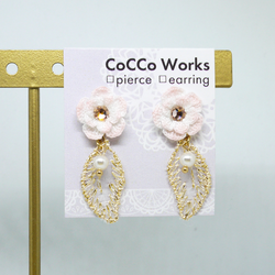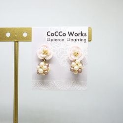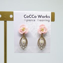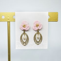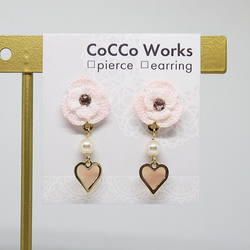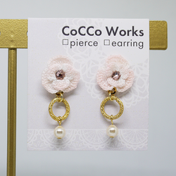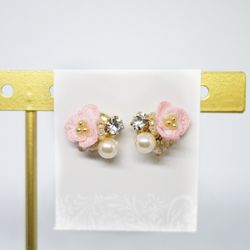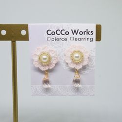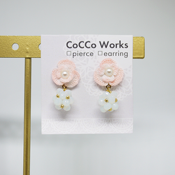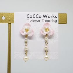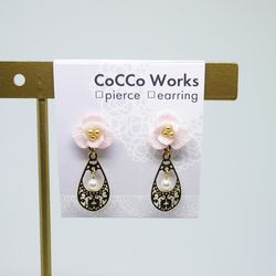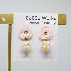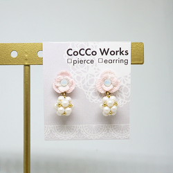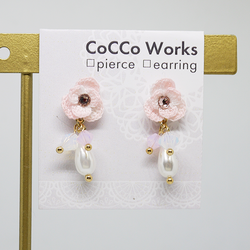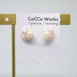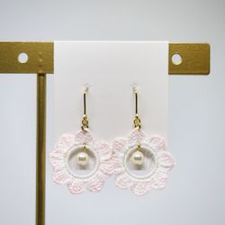029 フラワーピアス(パール/薄ピンク/透かしパーツ)