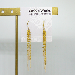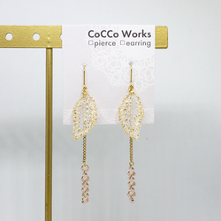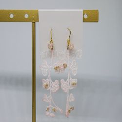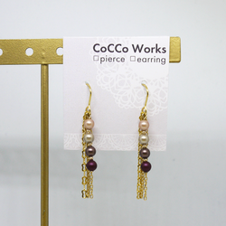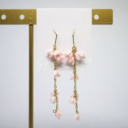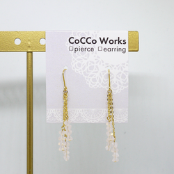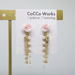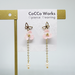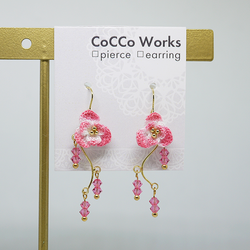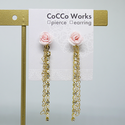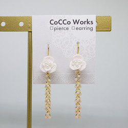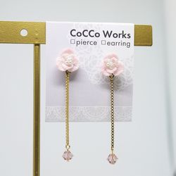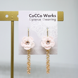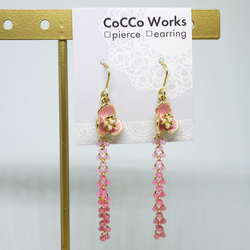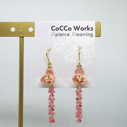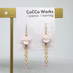 082 ビーズチェーンとお花のピアス(ピンク/艶消し)