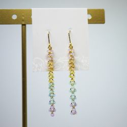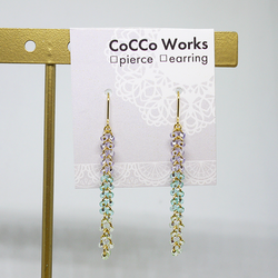 091 ビーズチェーンのピアス(グリーン/ブルー/パープル)