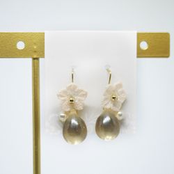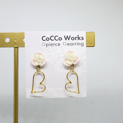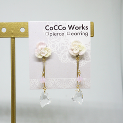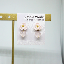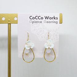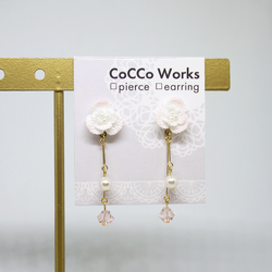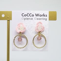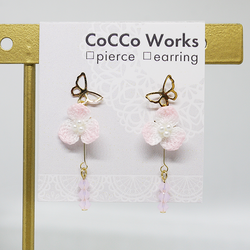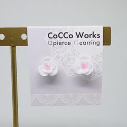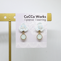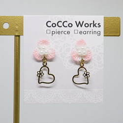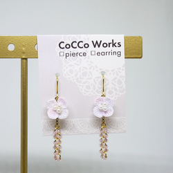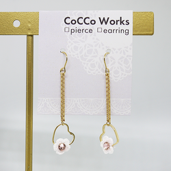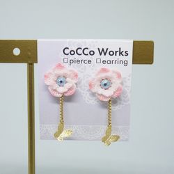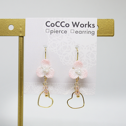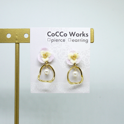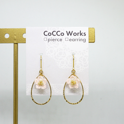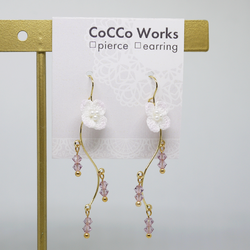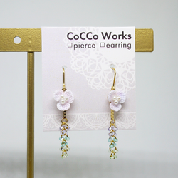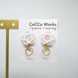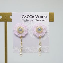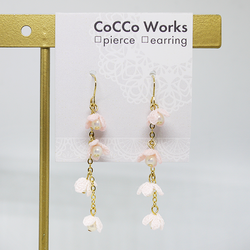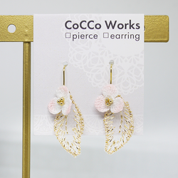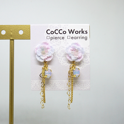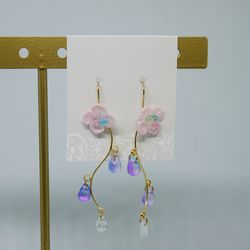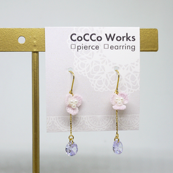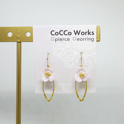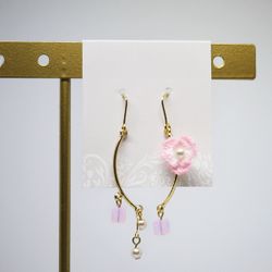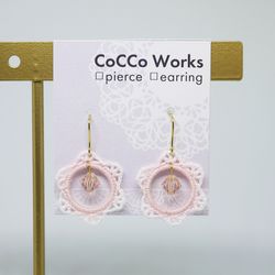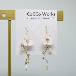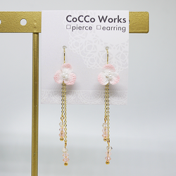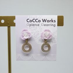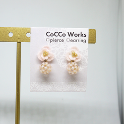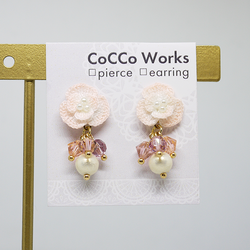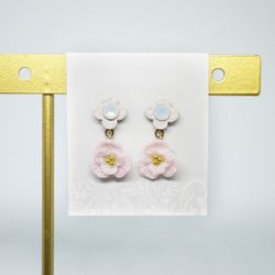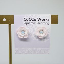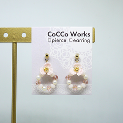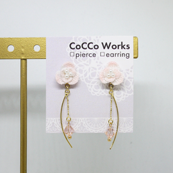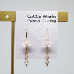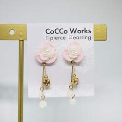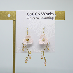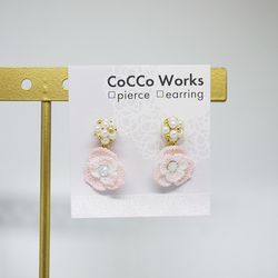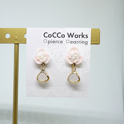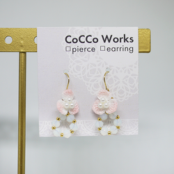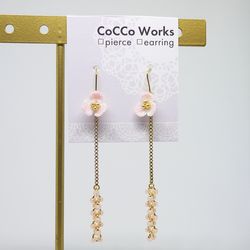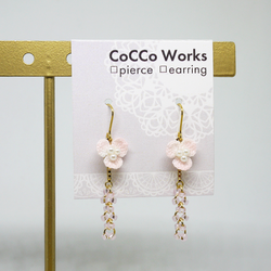 034 フラワーピアス(フックタイプ/薄ピンク×bubble)