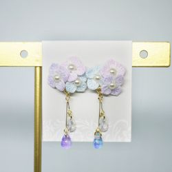 062 フラワービーズピアス(ブルー系/パール/紫陽花)