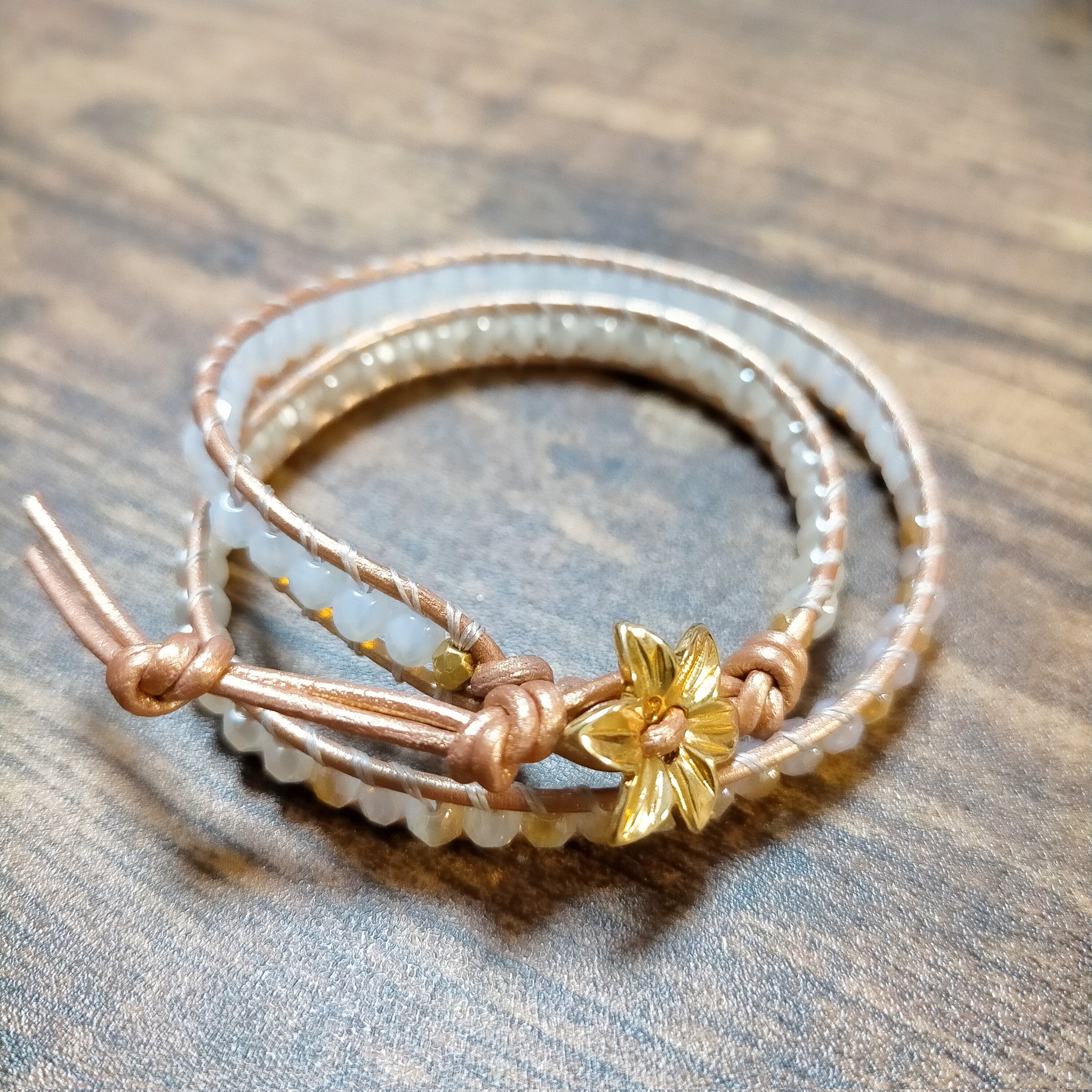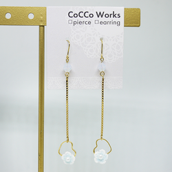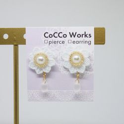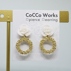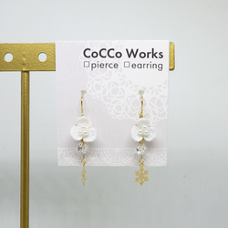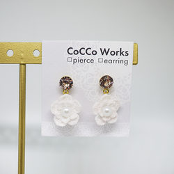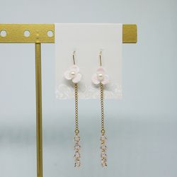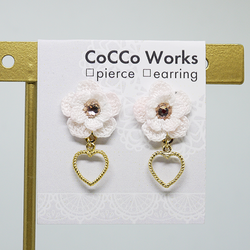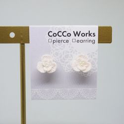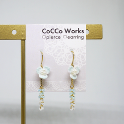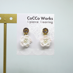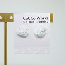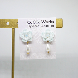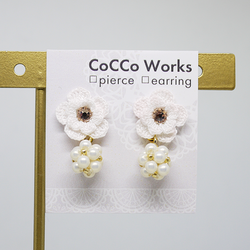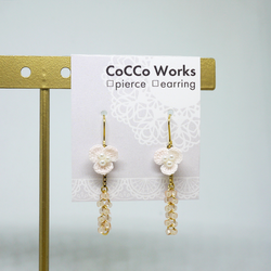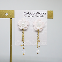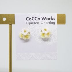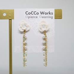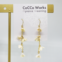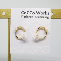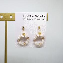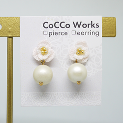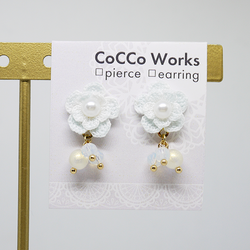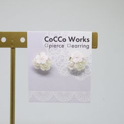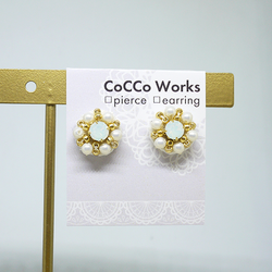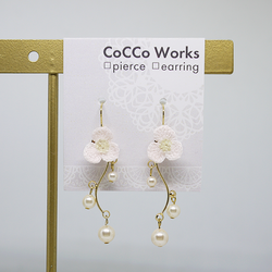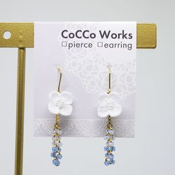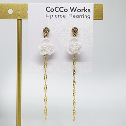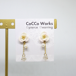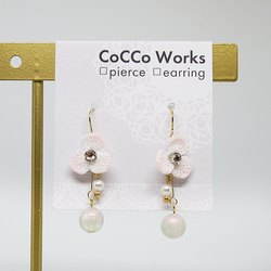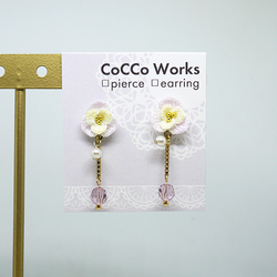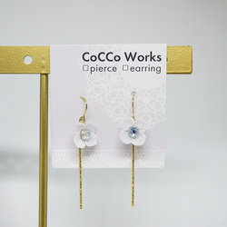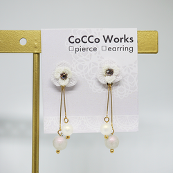 023 お花ピアス(スワロ/ホワイト/ビーズボール)