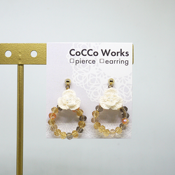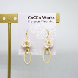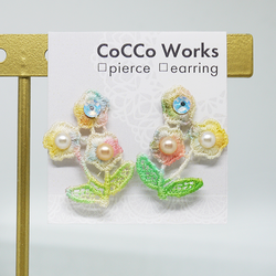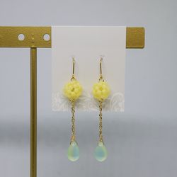 037 フラワーピアス(フックタイプ/イエロー×bubble)