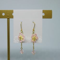 066 フラワーロングピアス(ピンク/スワロフスキー)