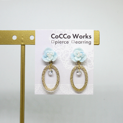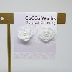 031 フラワーピアス(薄ブルー/透かしパーツ)