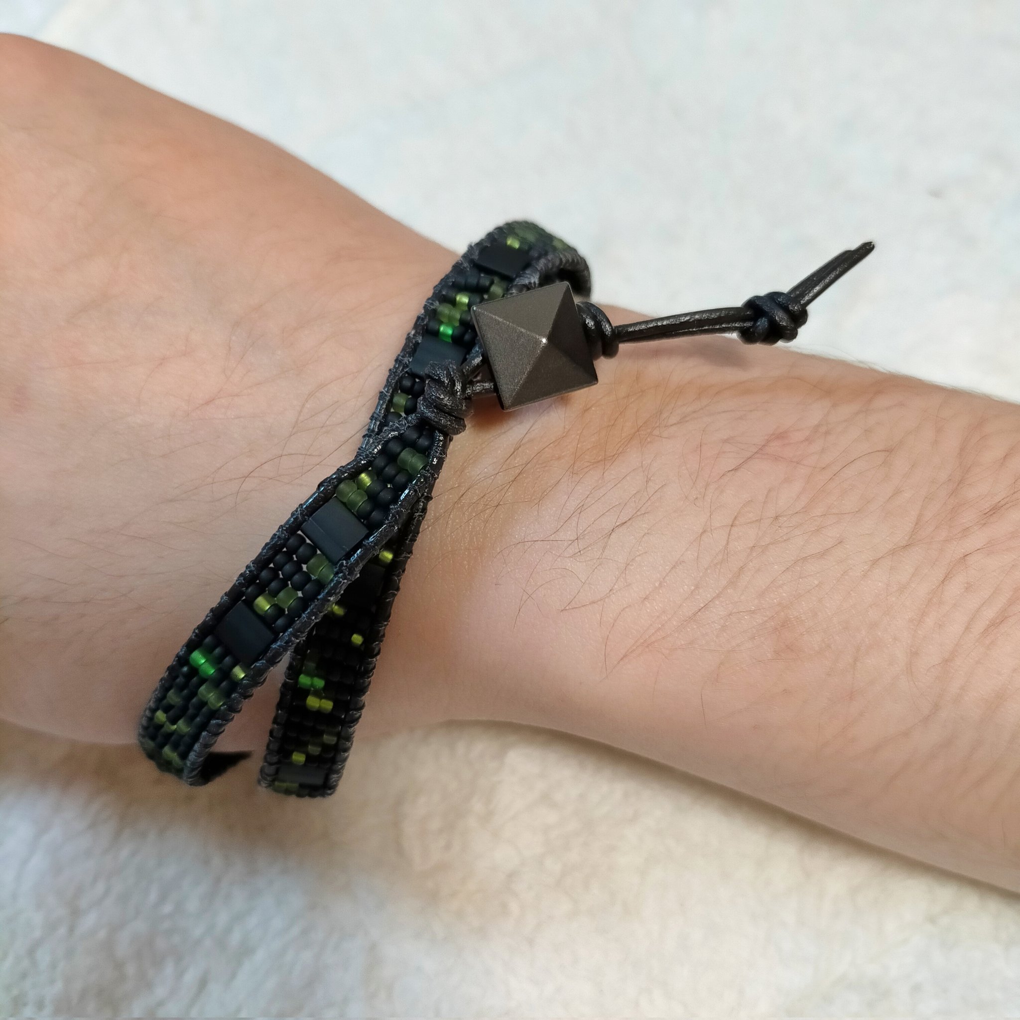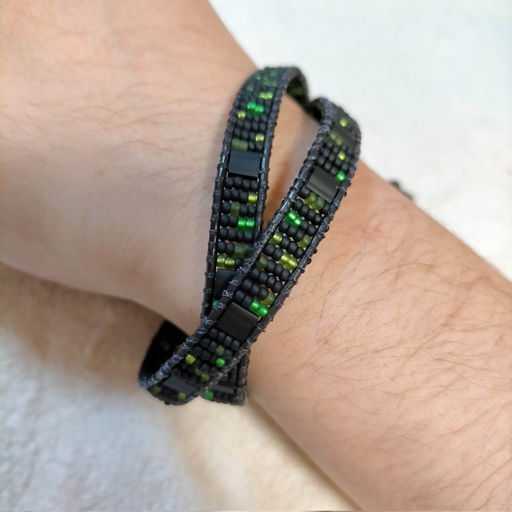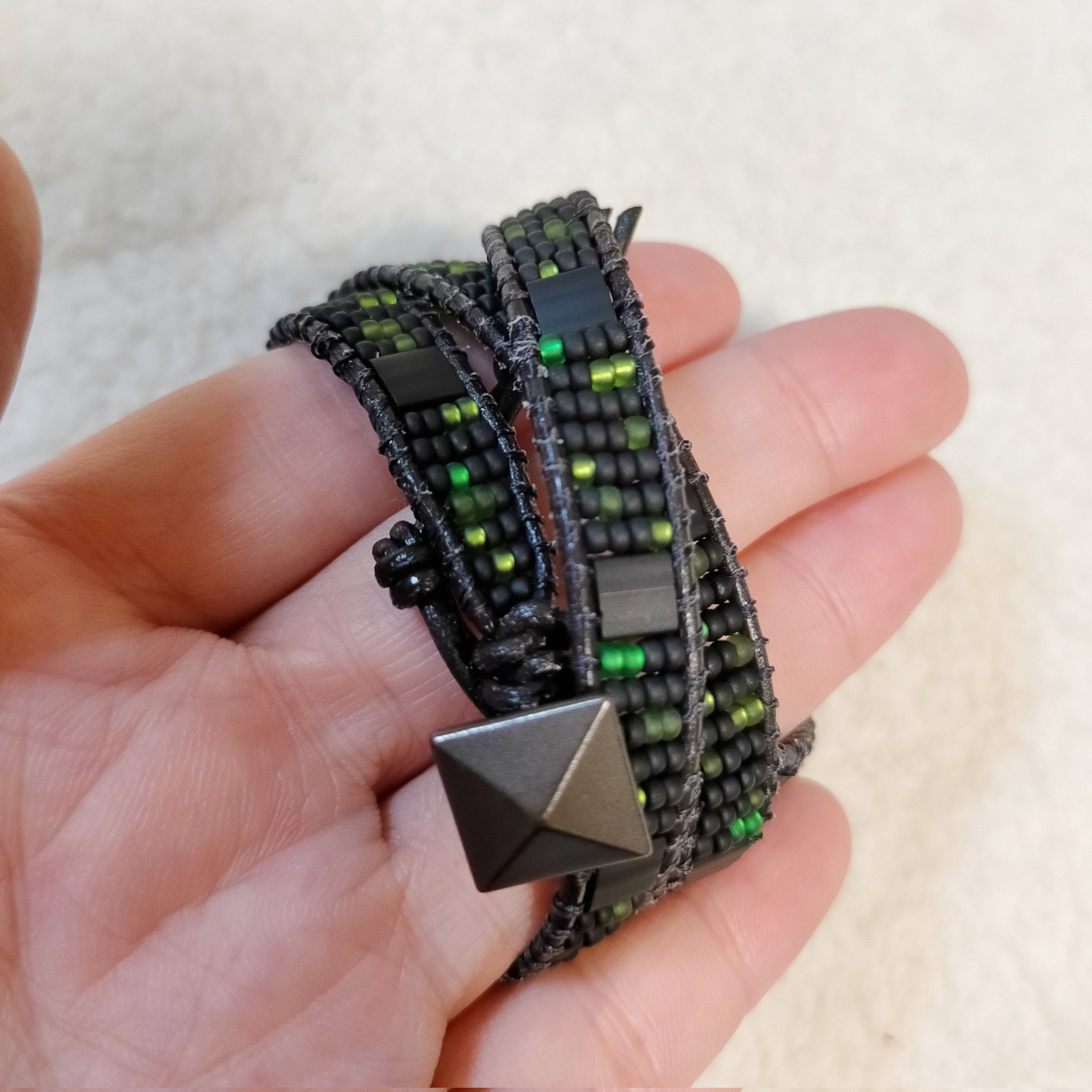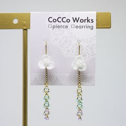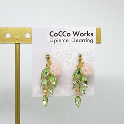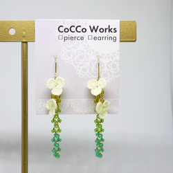 089 ビーズチェーンとお花のピアス(グリーン系ミックス)