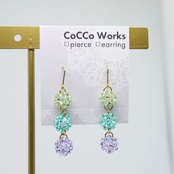 085 ビーズチェーンとお花のピアス(グリーン/ブルー/パープルミックス)