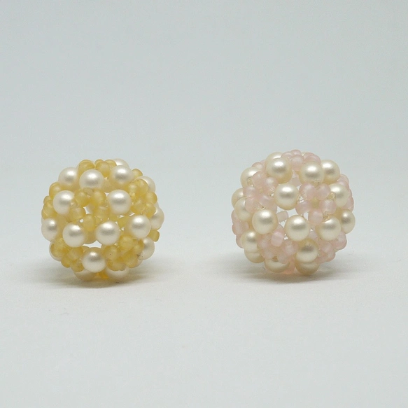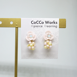 035 フラワーピアス(フックタイプ/薄ピンク×イエローつぶつぶ)