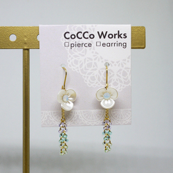 086 ビーズチェーンとお花のピアス(グリーン/ブルー/パープルミックス)(パールフラワー)