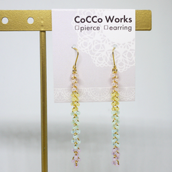083 ビーズチェーンとお花のピアス(ピンク/イエロー/パープルミックス)