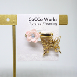 009 お花ピアス(アシンメトリー/スワロ/ピンク)