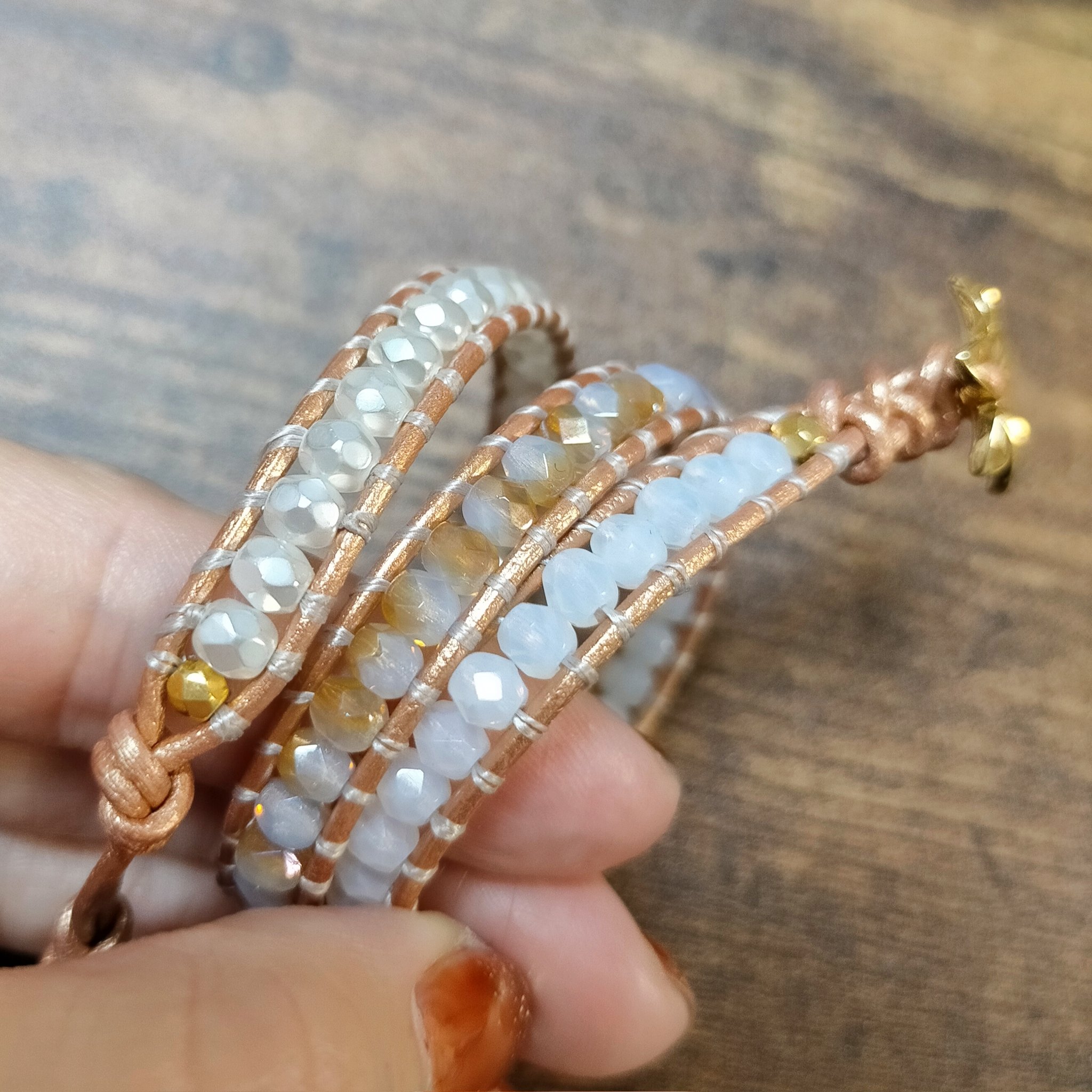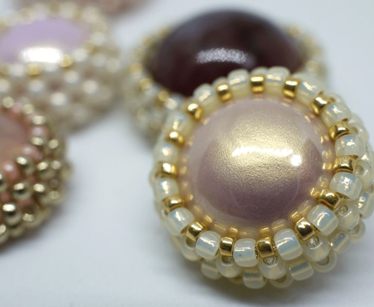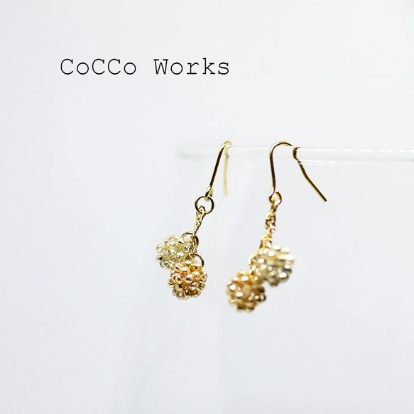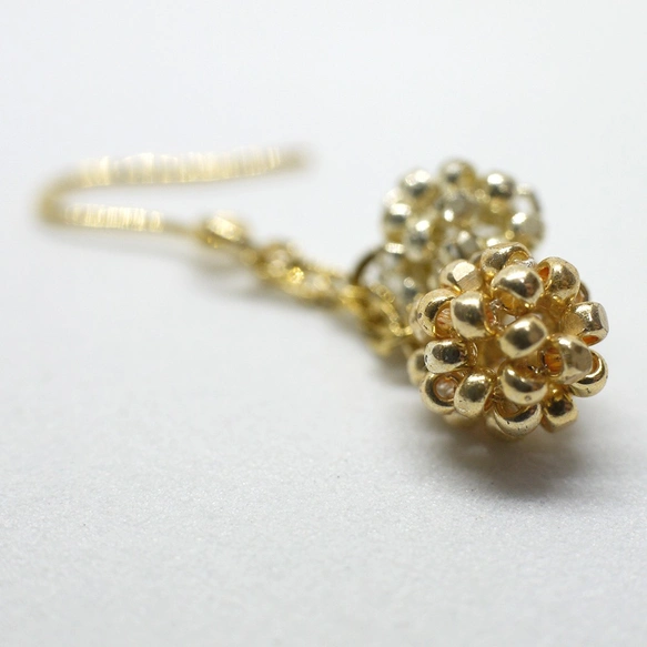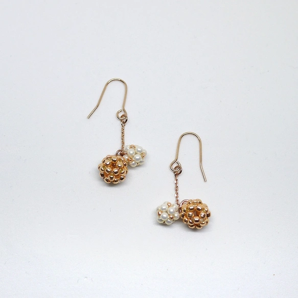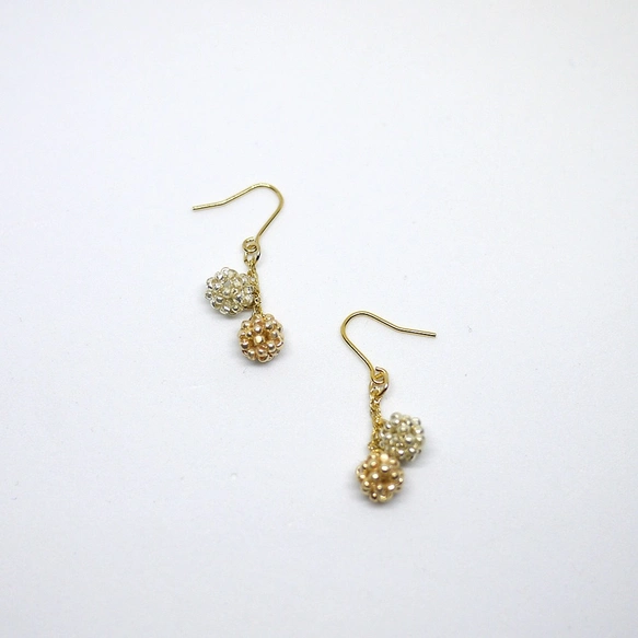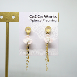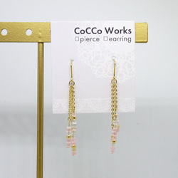 010 ビーズピアス(ピンクビーズボール/ゴールドモチーフ)