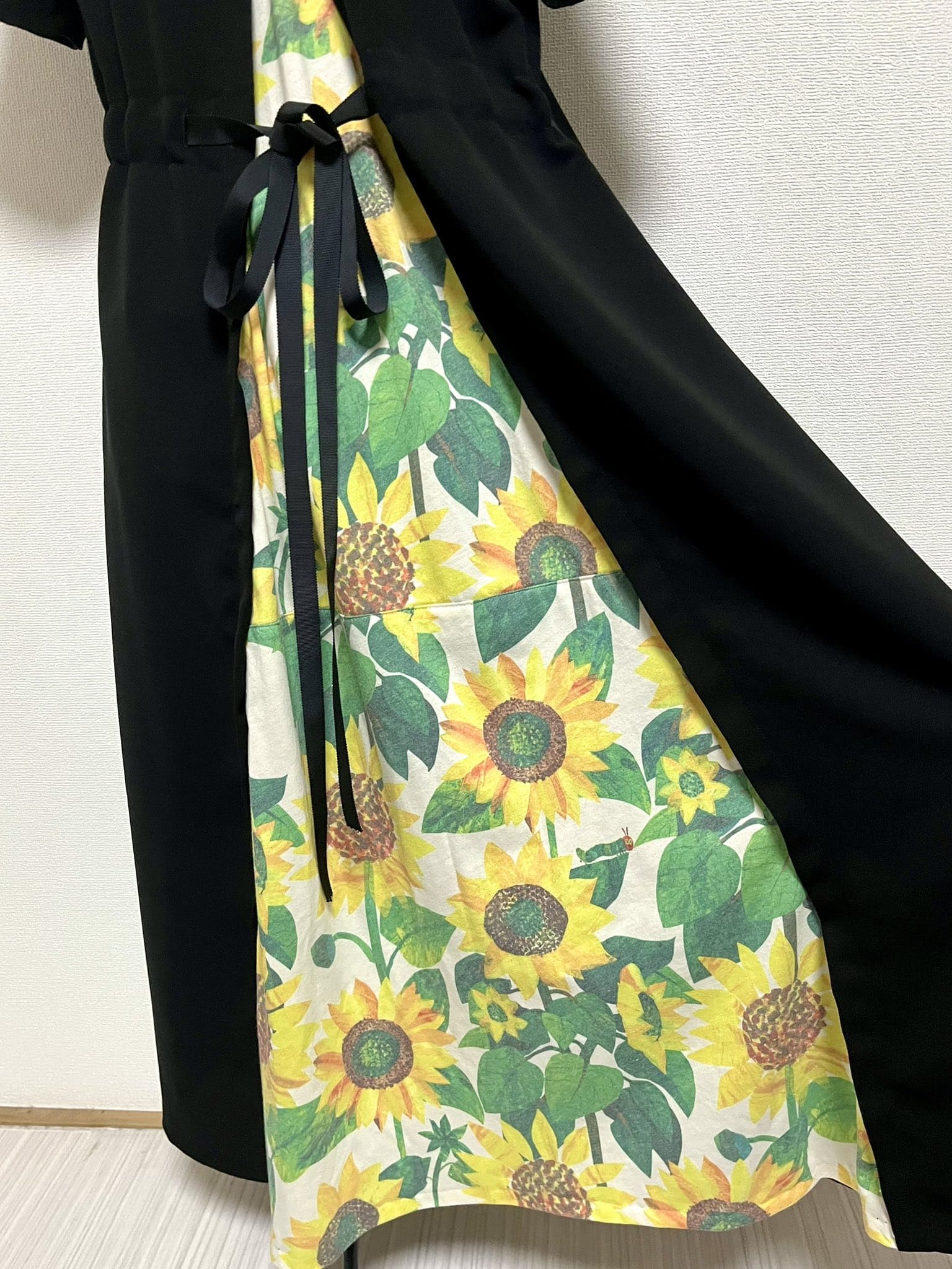 バック切り替えワンピース(ひまわりスカートのリメイク)