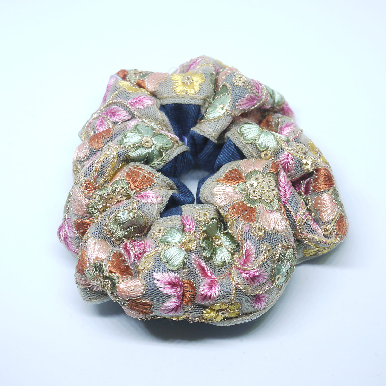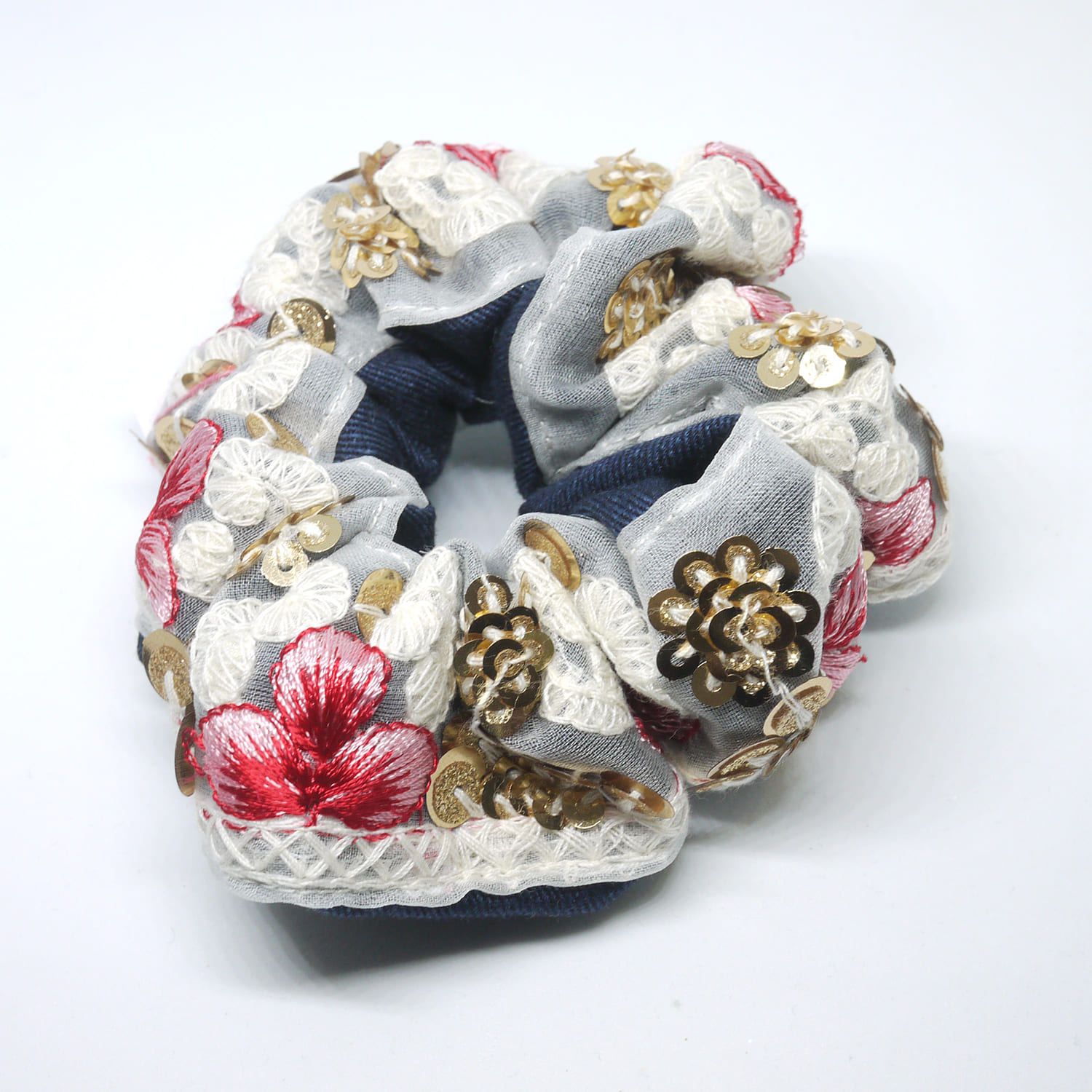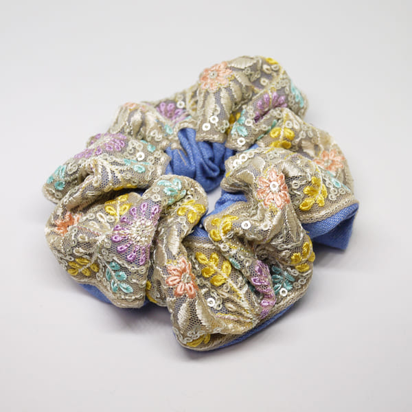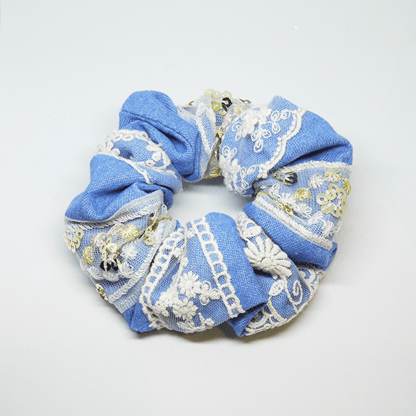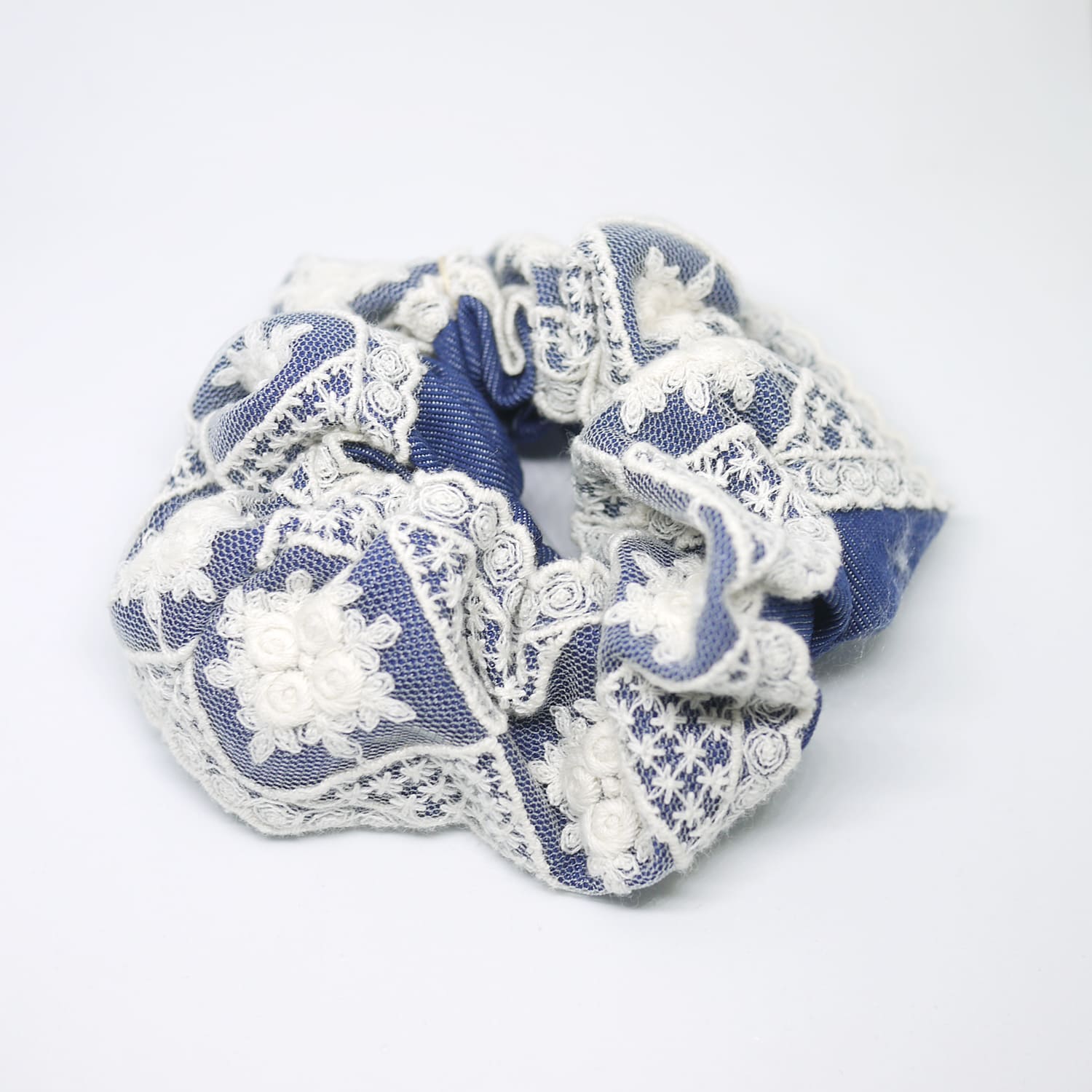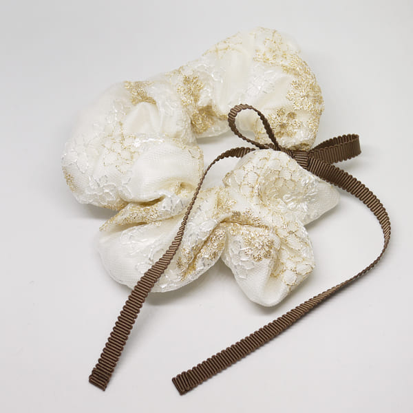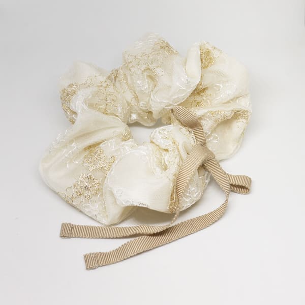 044 キュプラ×レースシュシュ(サテンリボン付き)