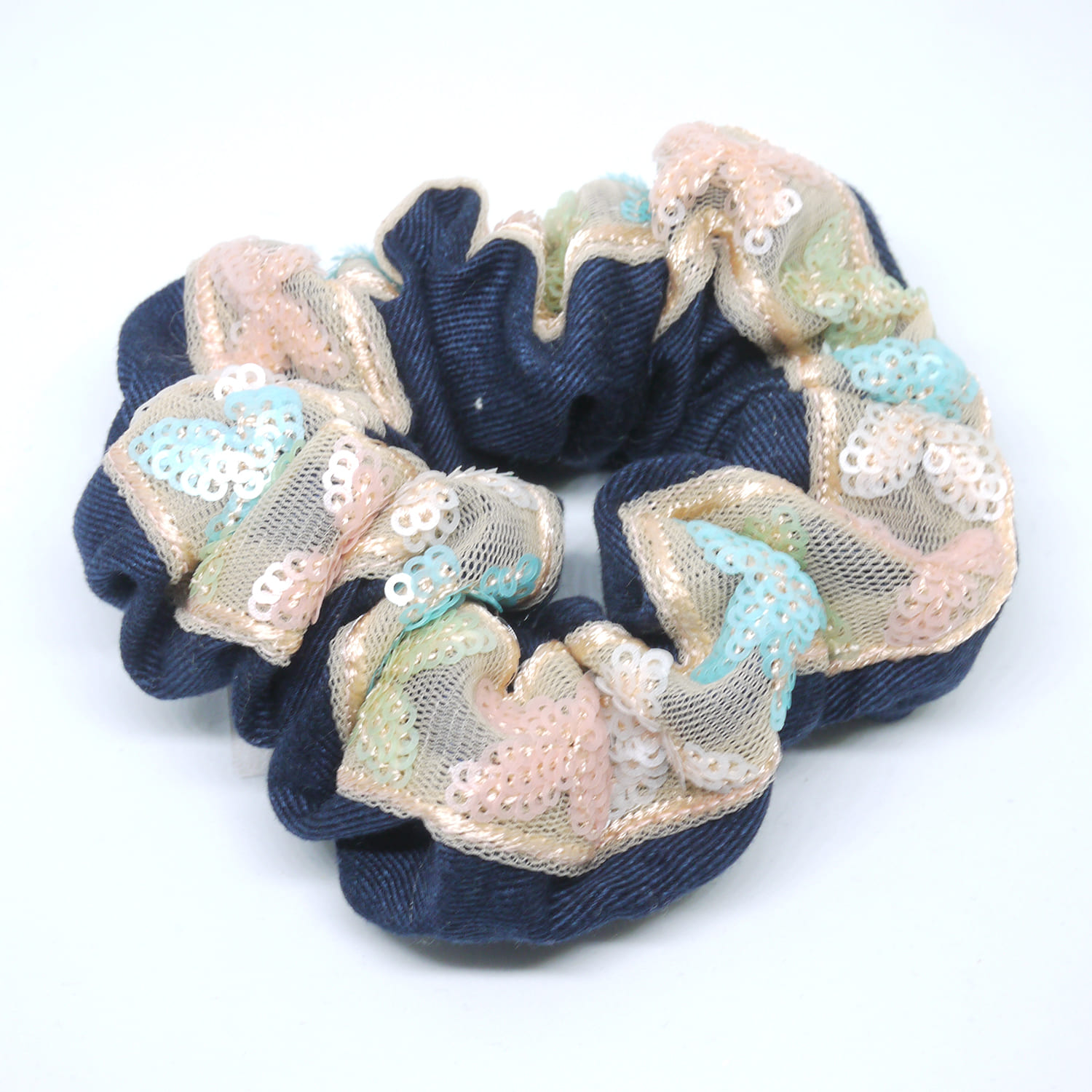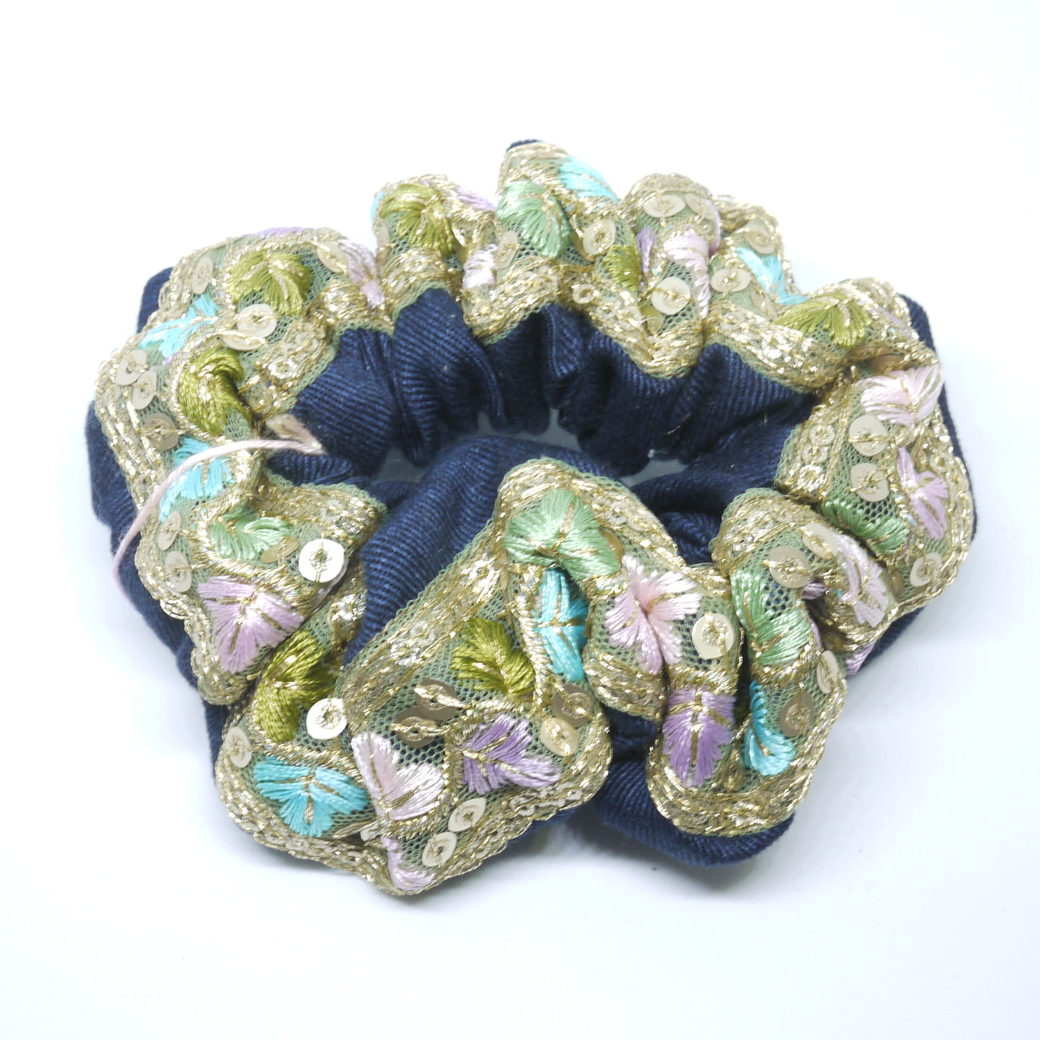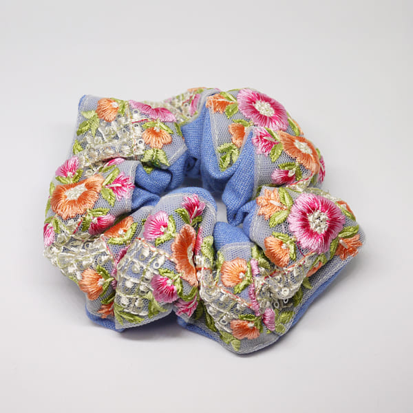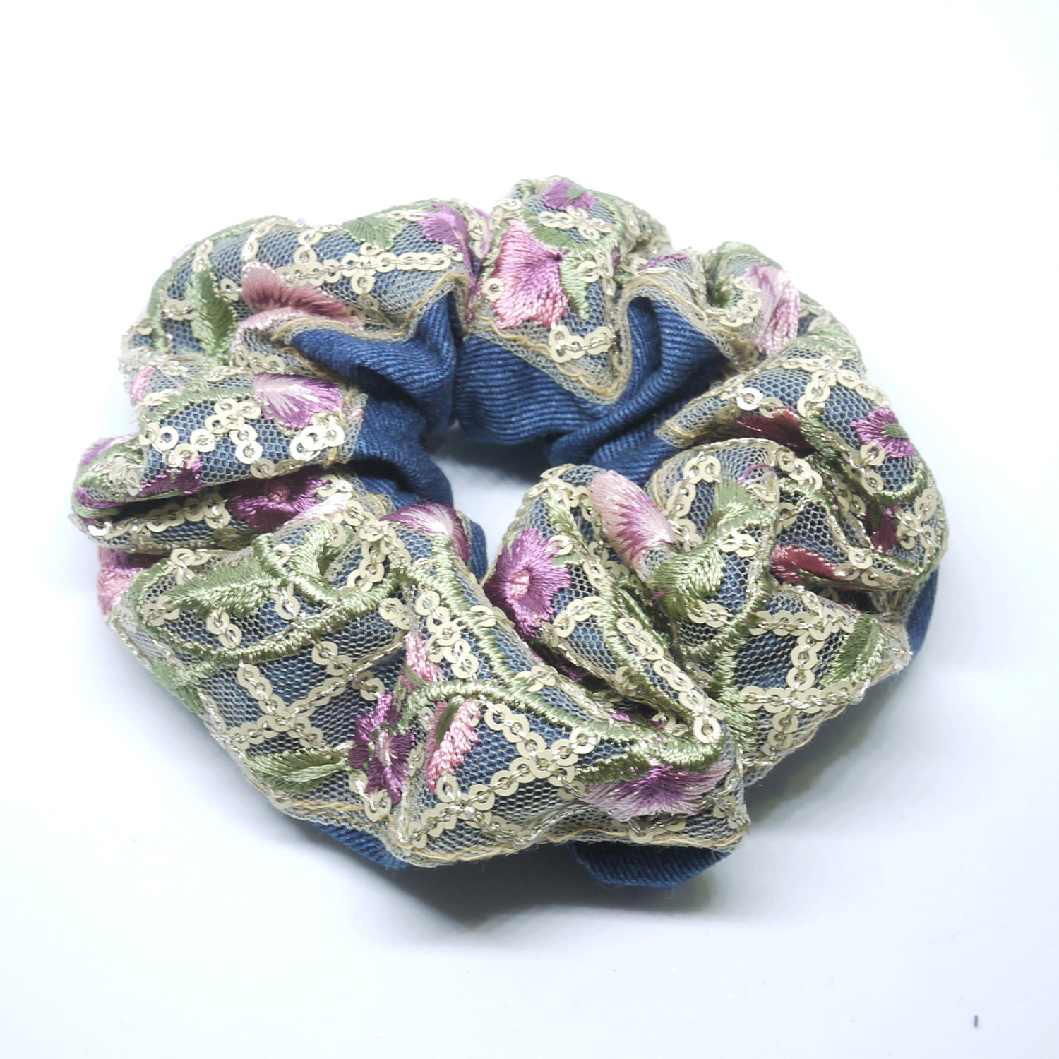 044 キュプラ×レースシュシュ(サテンリボン付き)
