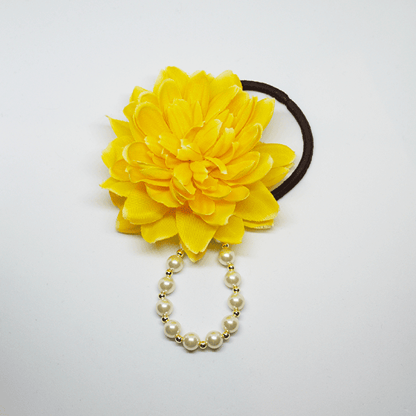 029 大きなお花のヘアゴム/イエロー(取り外し可能チャーム付き)