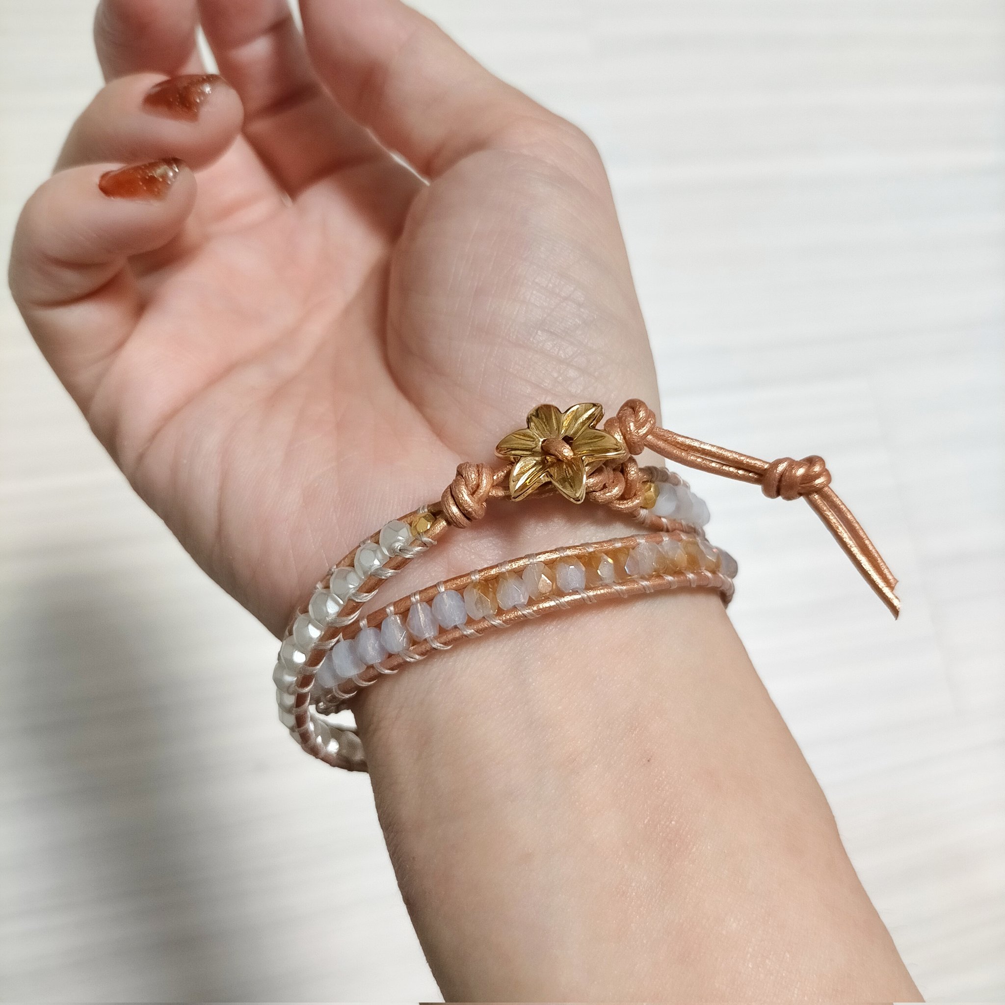 039 2段のフラワーピアス(薄ピンク×オーロラクリスタル)