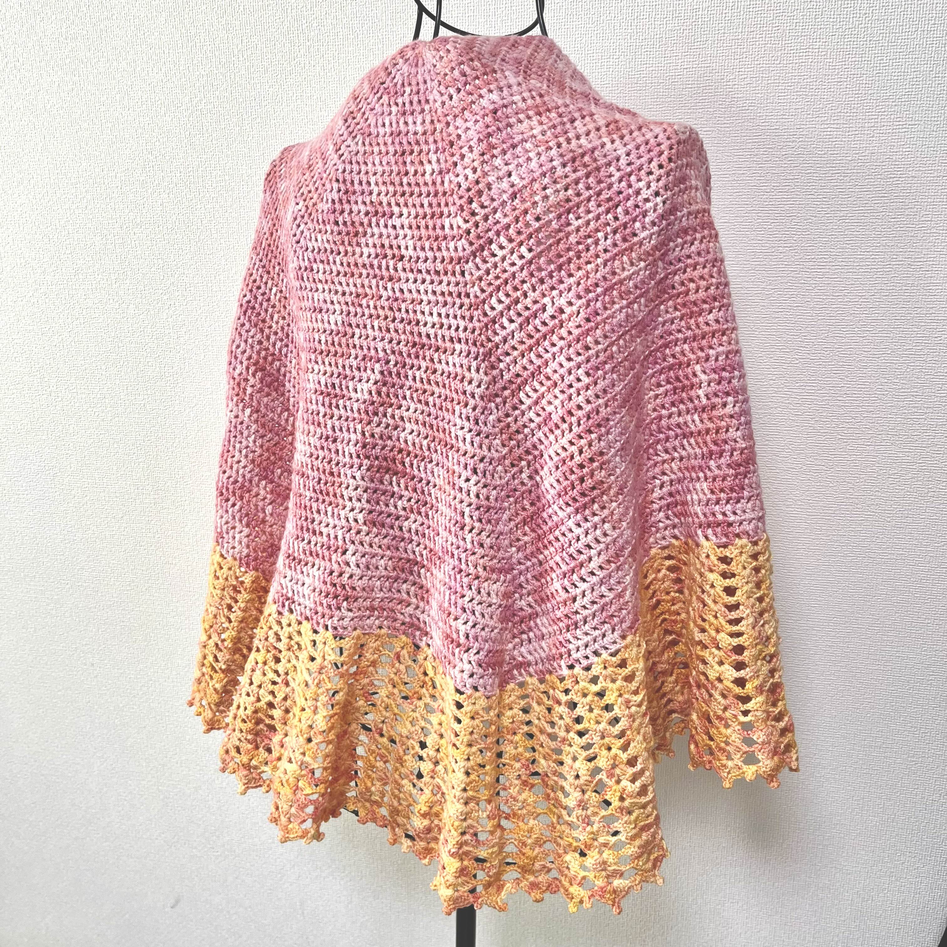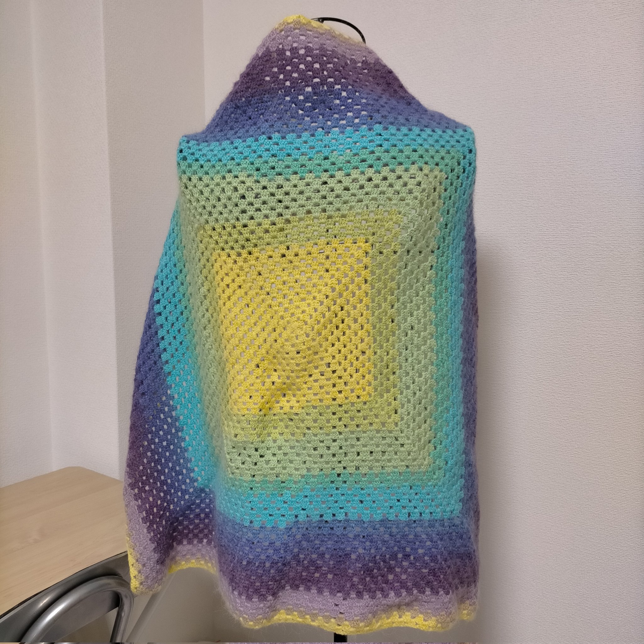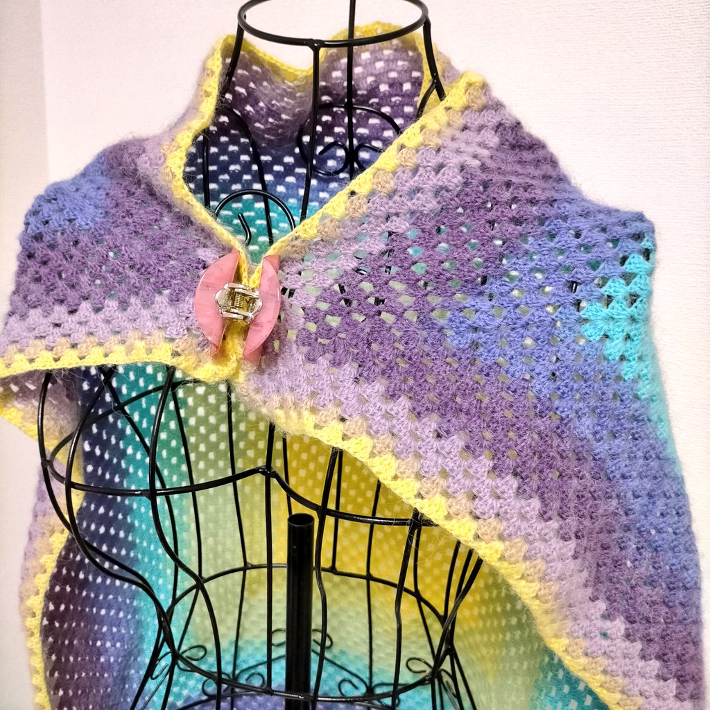 手染め糸(なちゅらるはるさん)で編んだばーちゃんオリジナル編み図のストール