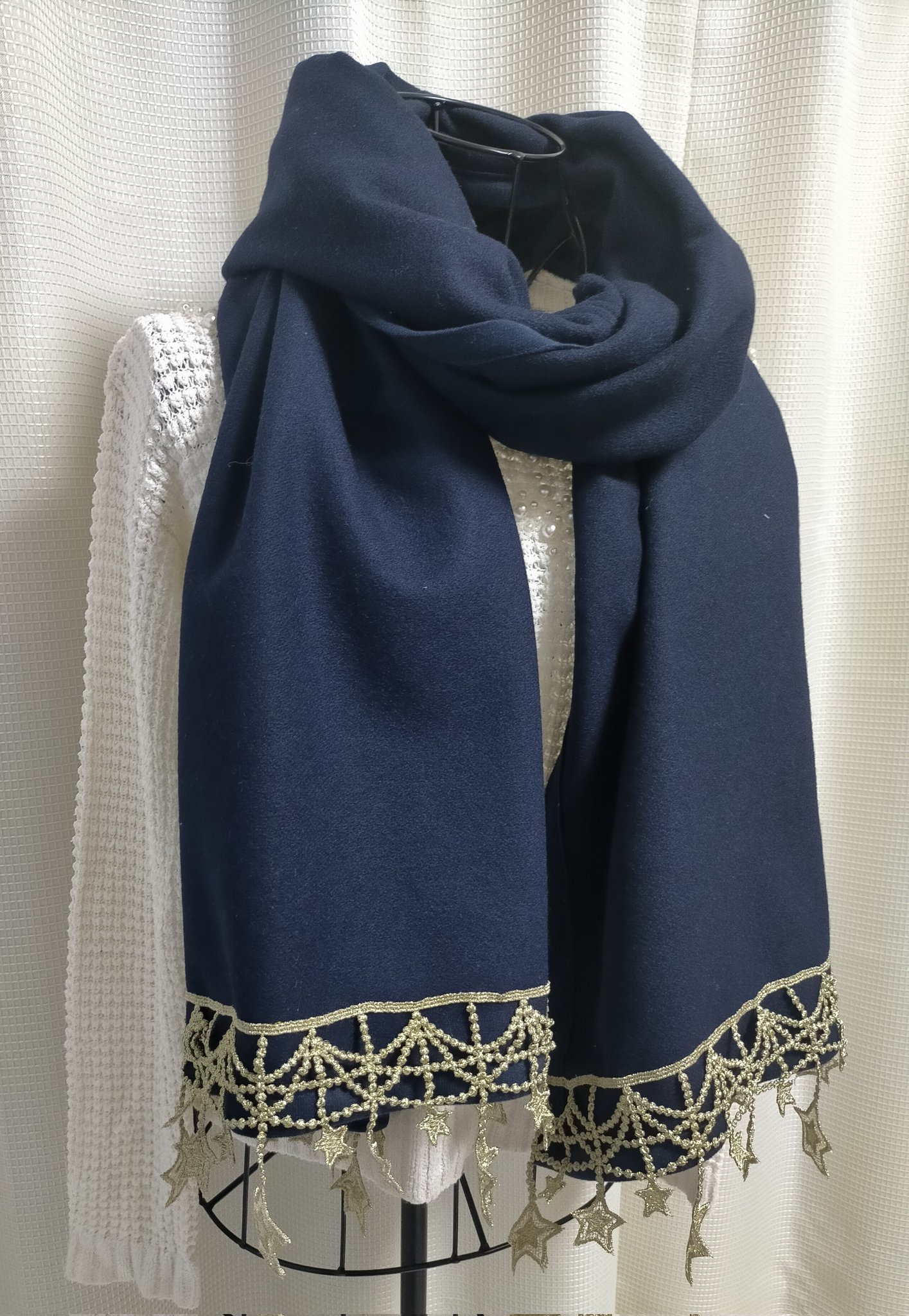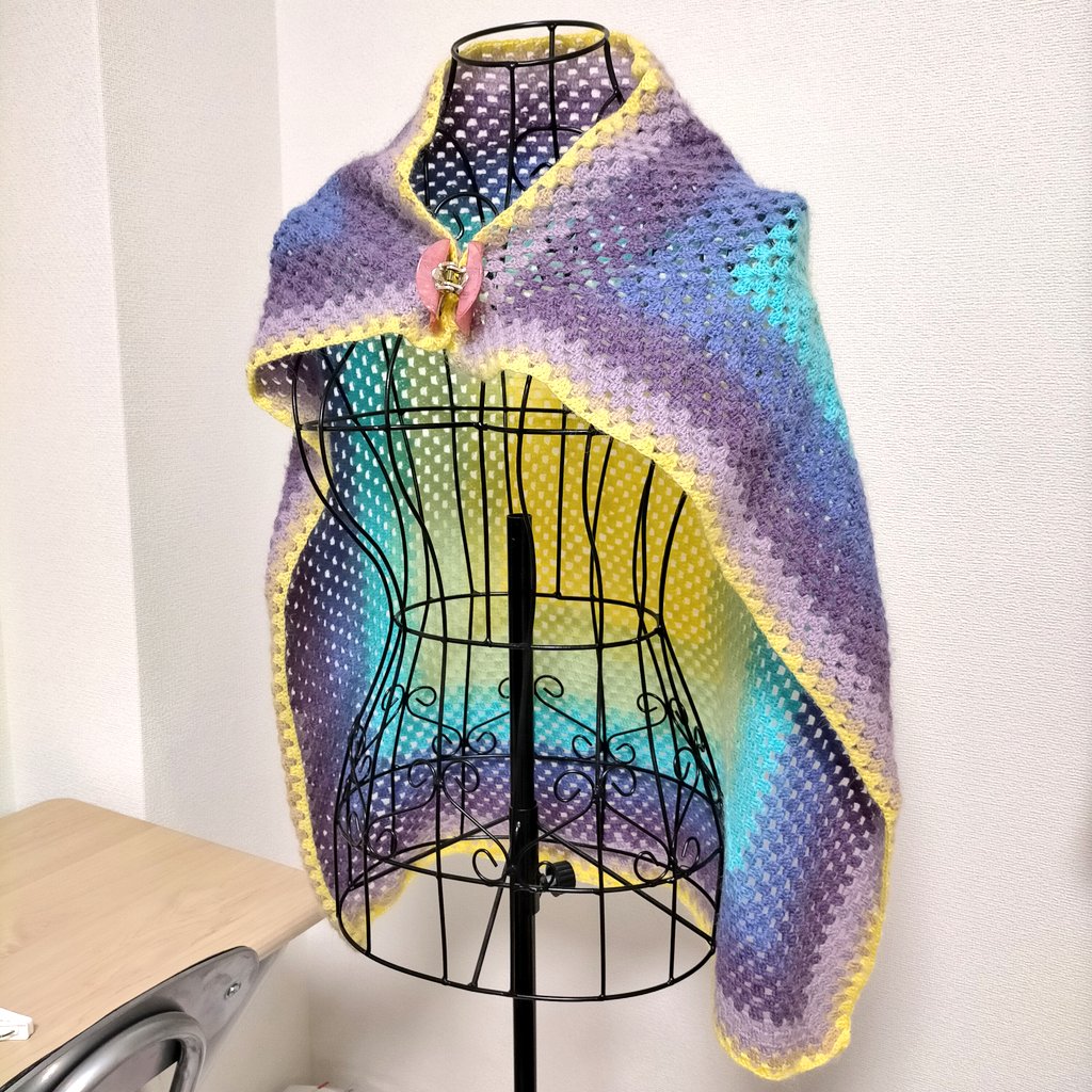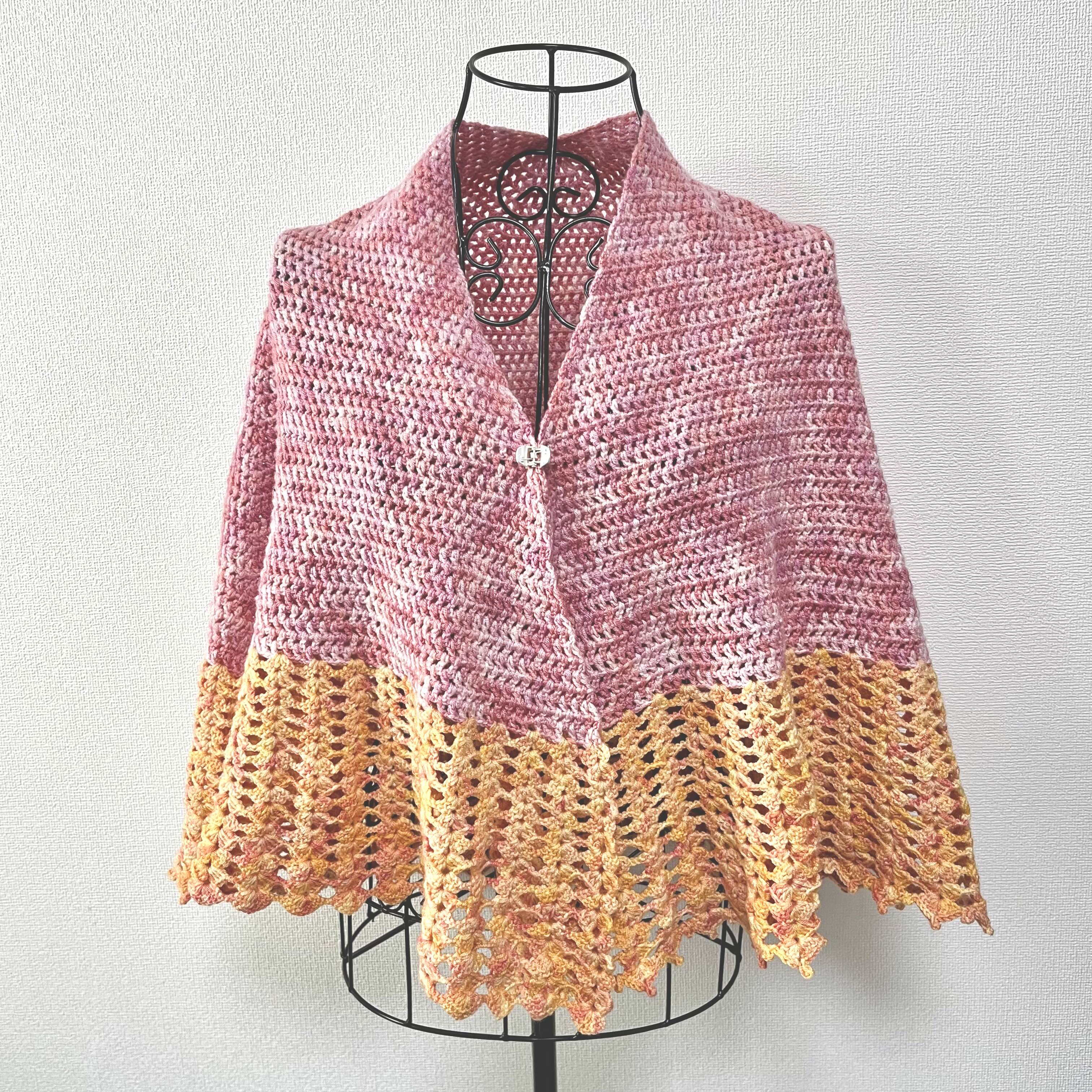 手染め糸(なちゅらるはるさん)で編んだばーちゃんオリジナル編み図のストール