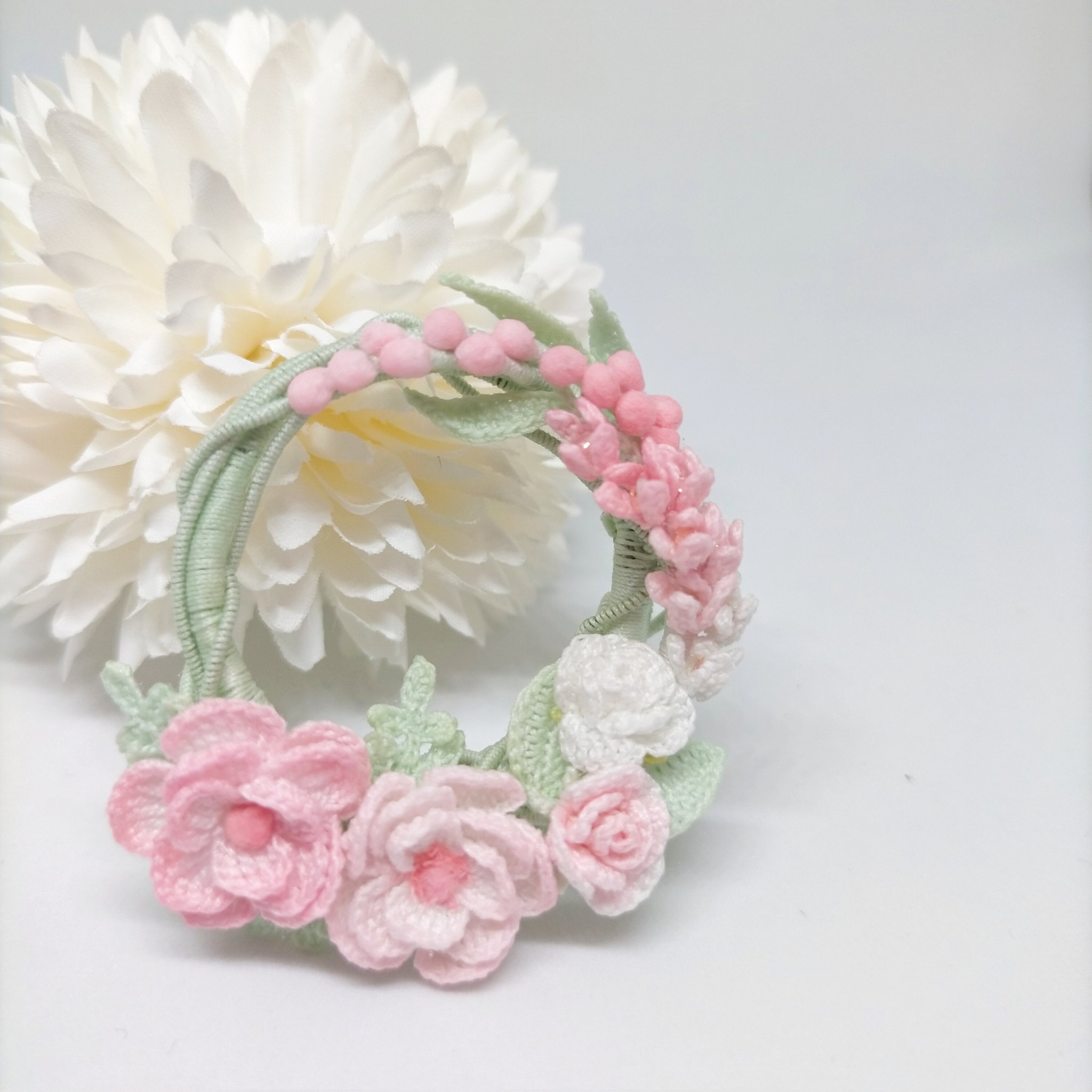 029 大きなお花のヘアゴム/ピンク(取り外し可能チャーム付き)
