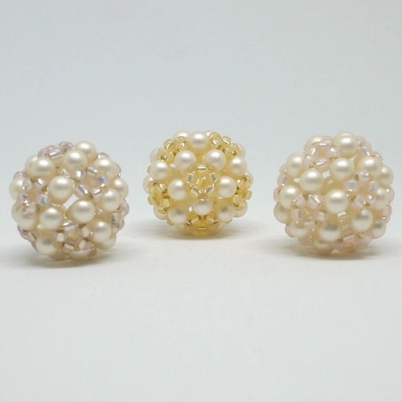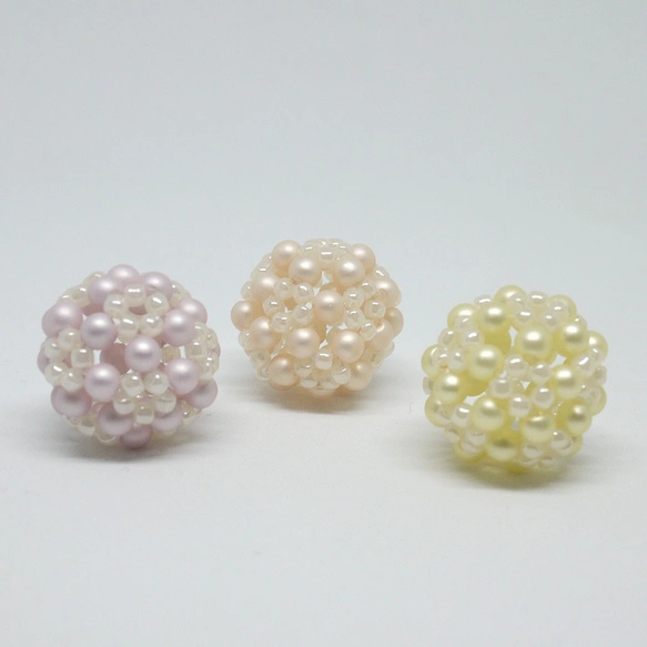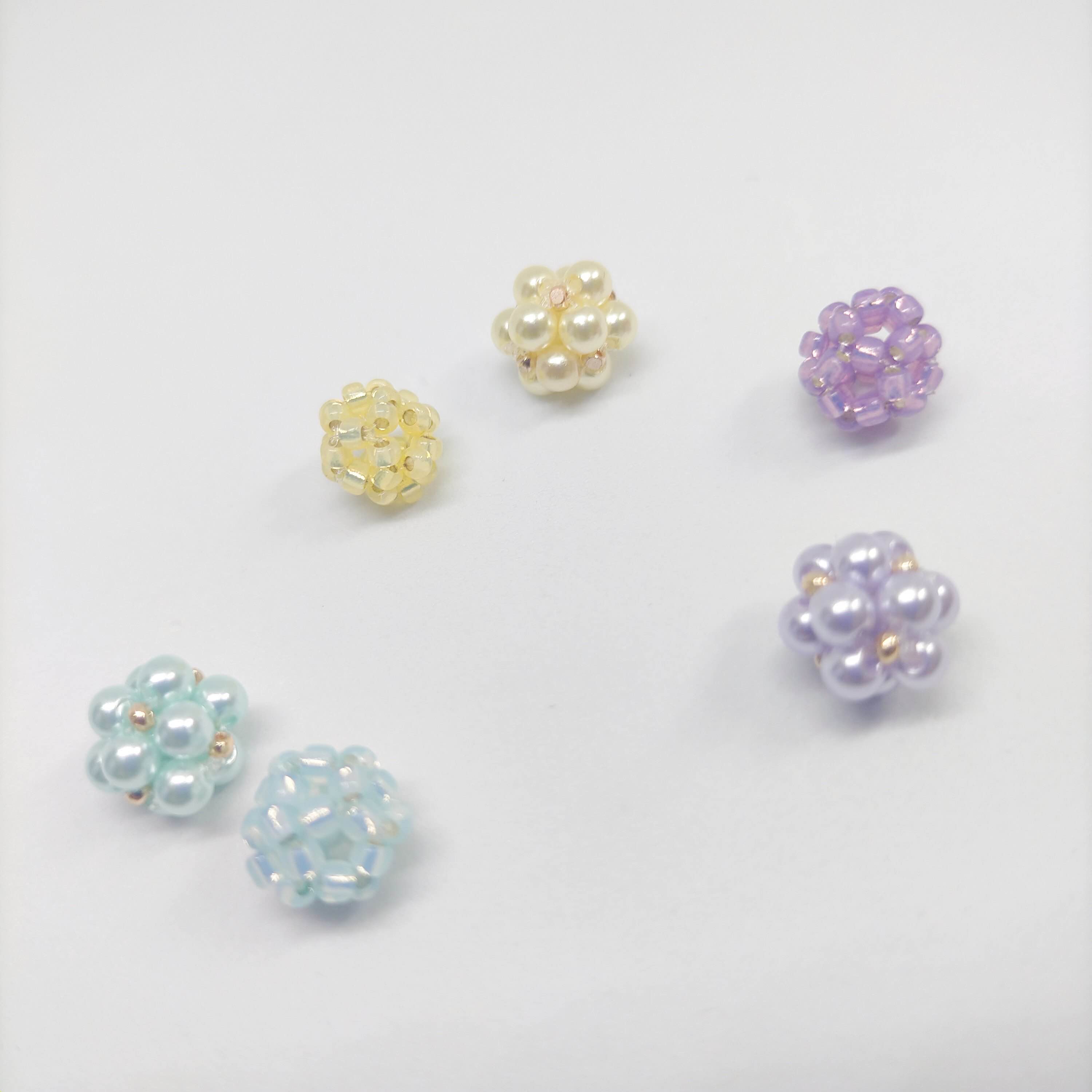 067 3連ビーズボールピアス(ブルー系3色/セレクトビーズ)