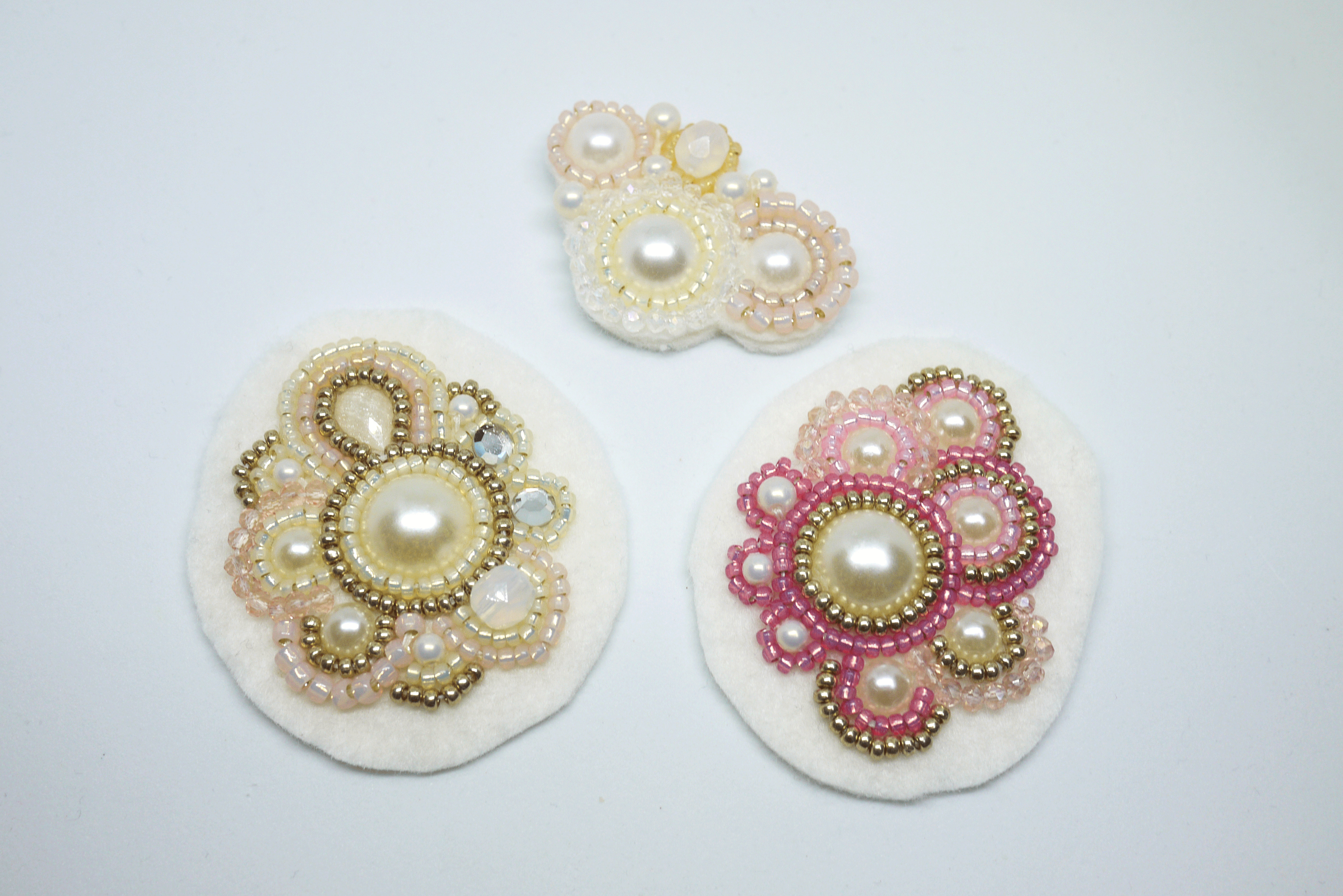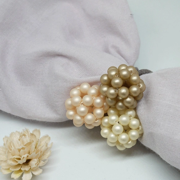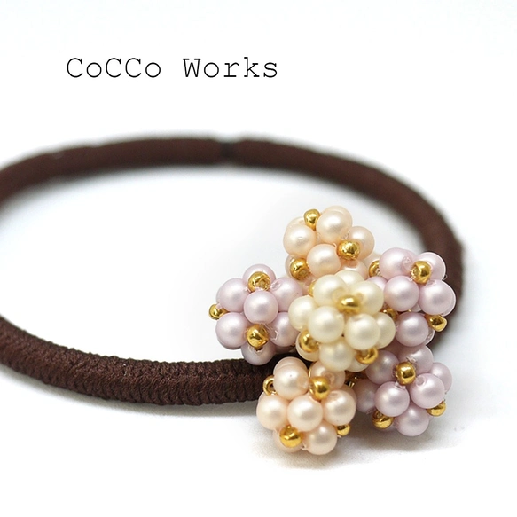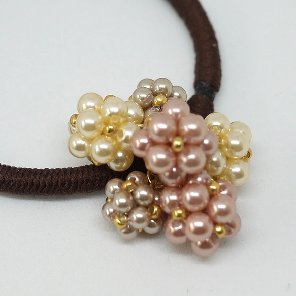 059 フラワービーズピアス(ピンク/パール/ツヤビーズ)