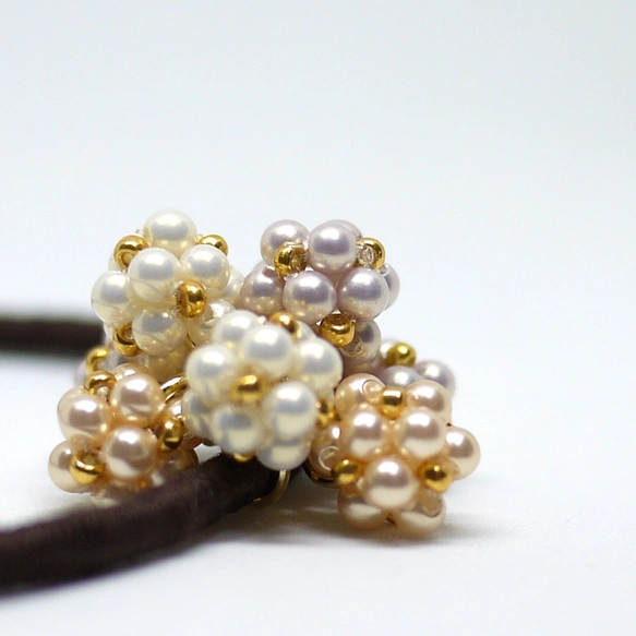 011 お花ピアス(パール/ゴールドパーツ/ピンク)