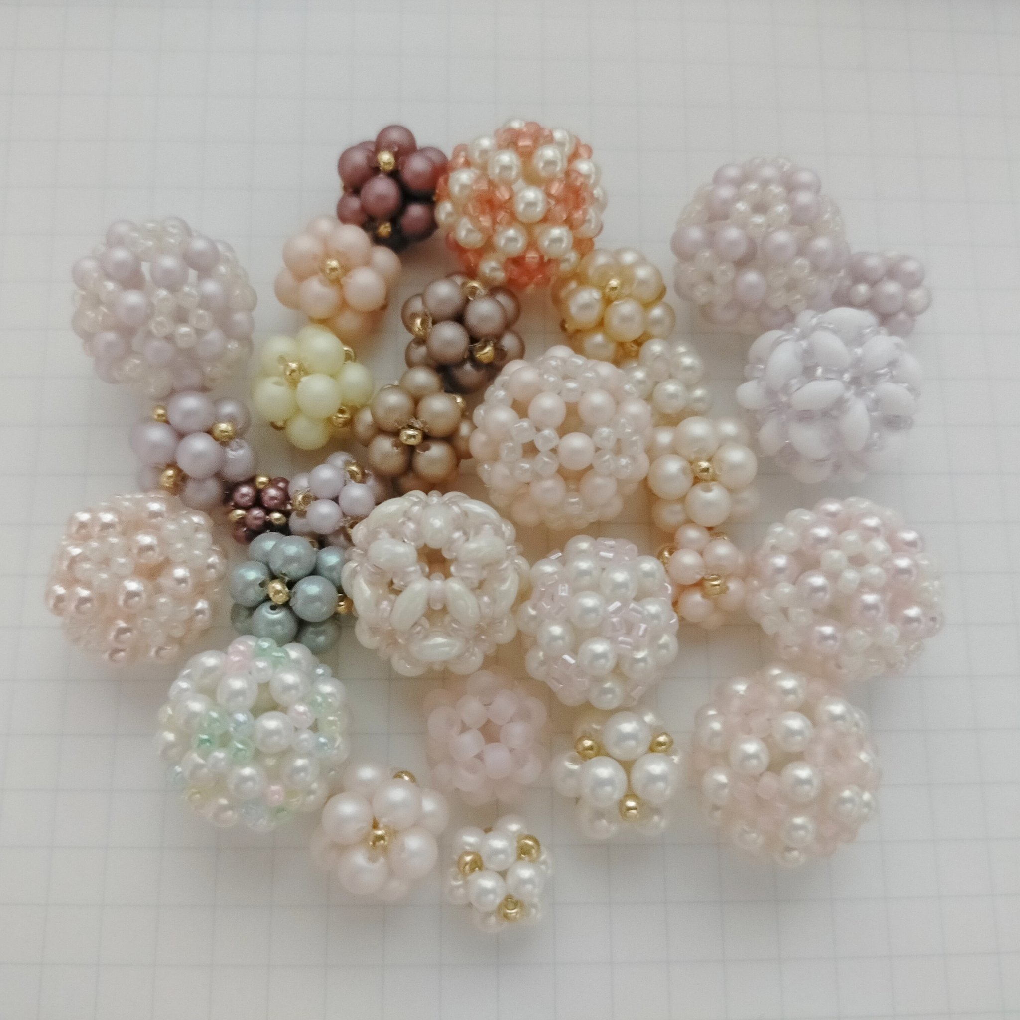 058 フラワービーズピアス(ピンク/パール/艶消しビーズ)