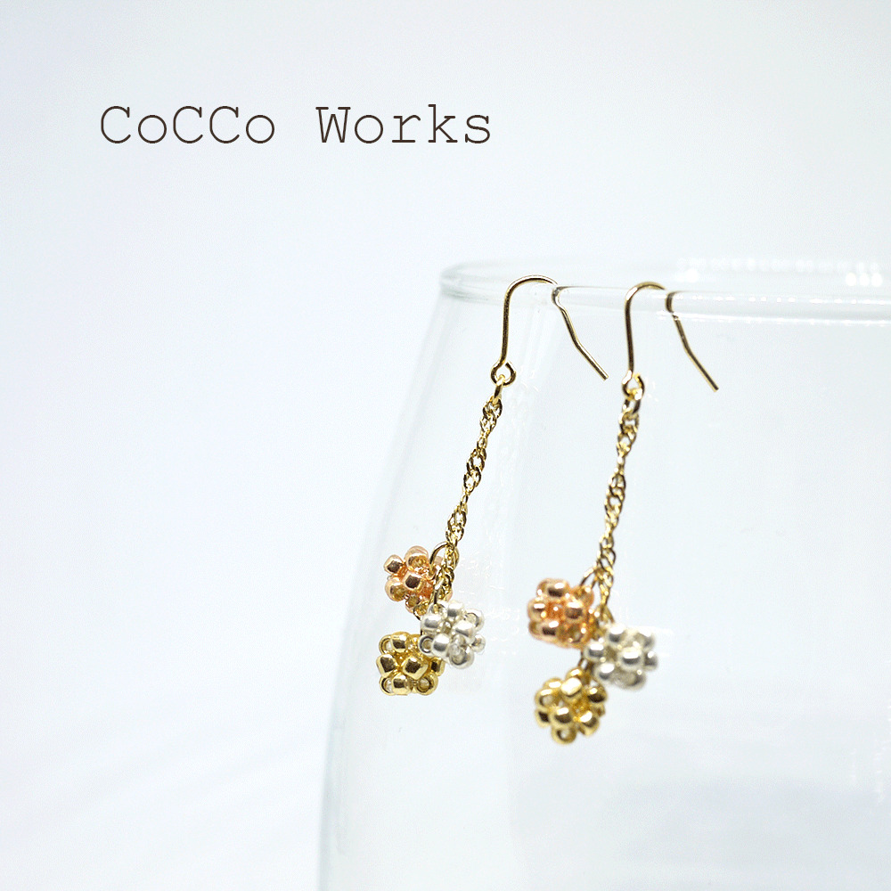 046 3粒プチフラワーピアス(イエロー/オレンジ/ピンク)