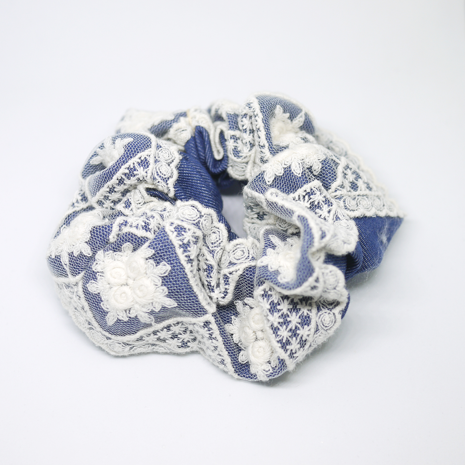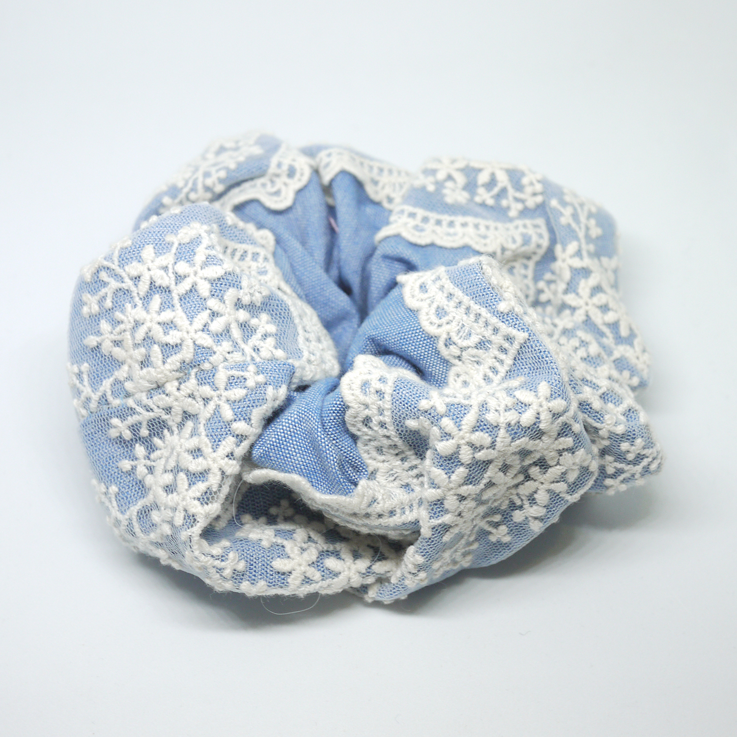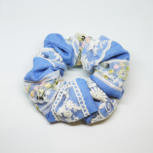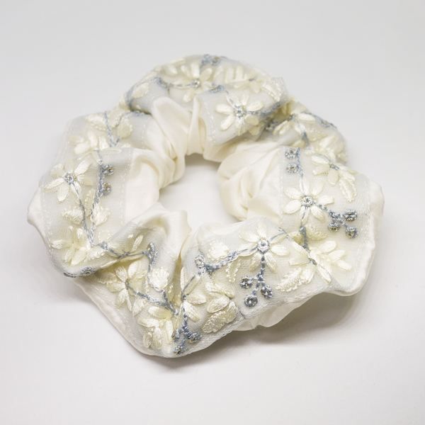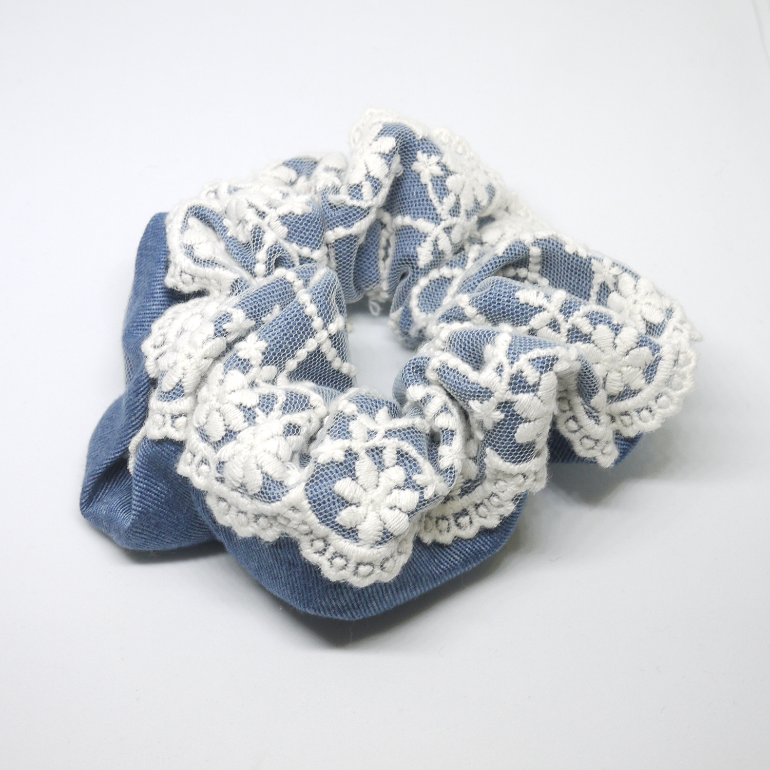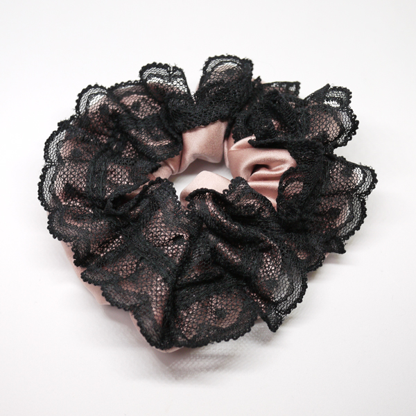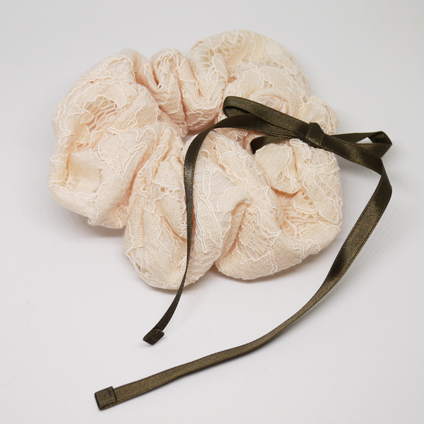 044 キュプラ×レースシュシュ(サテンリボン付き)