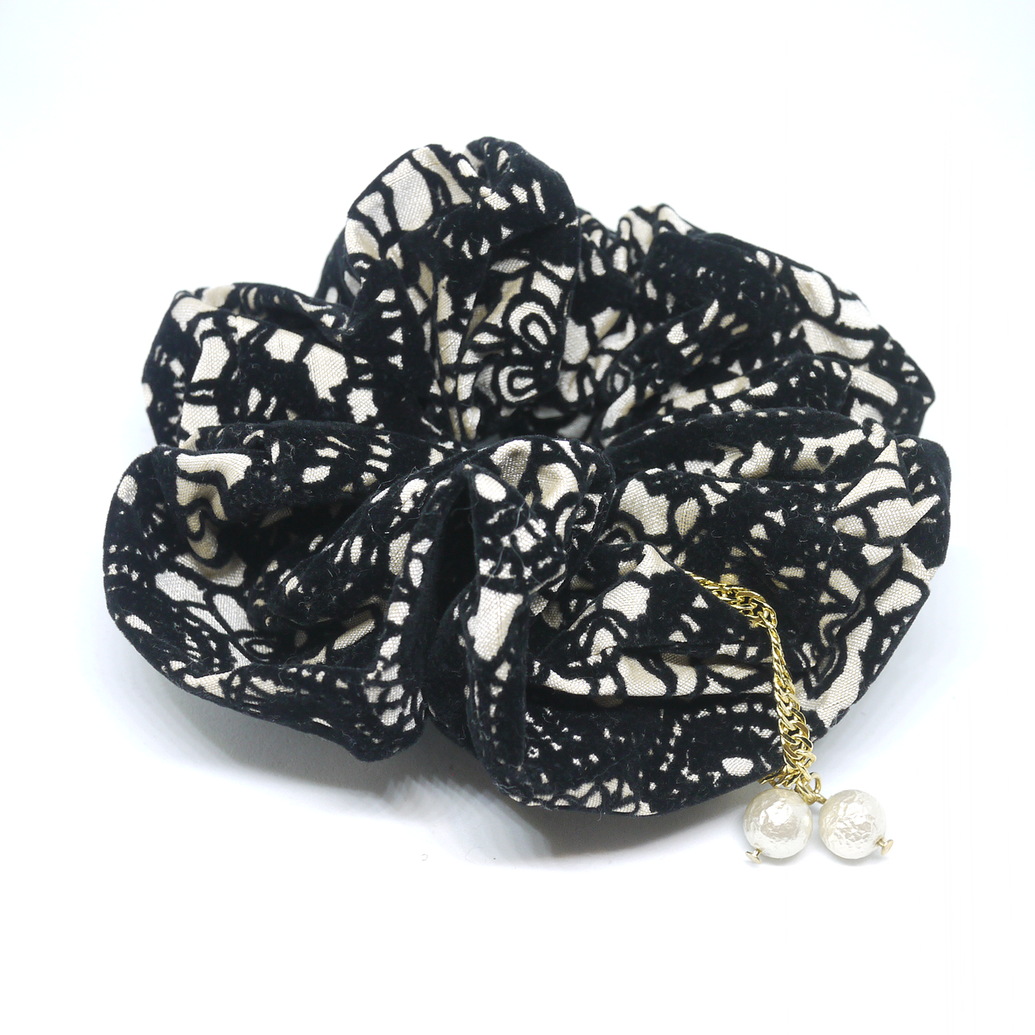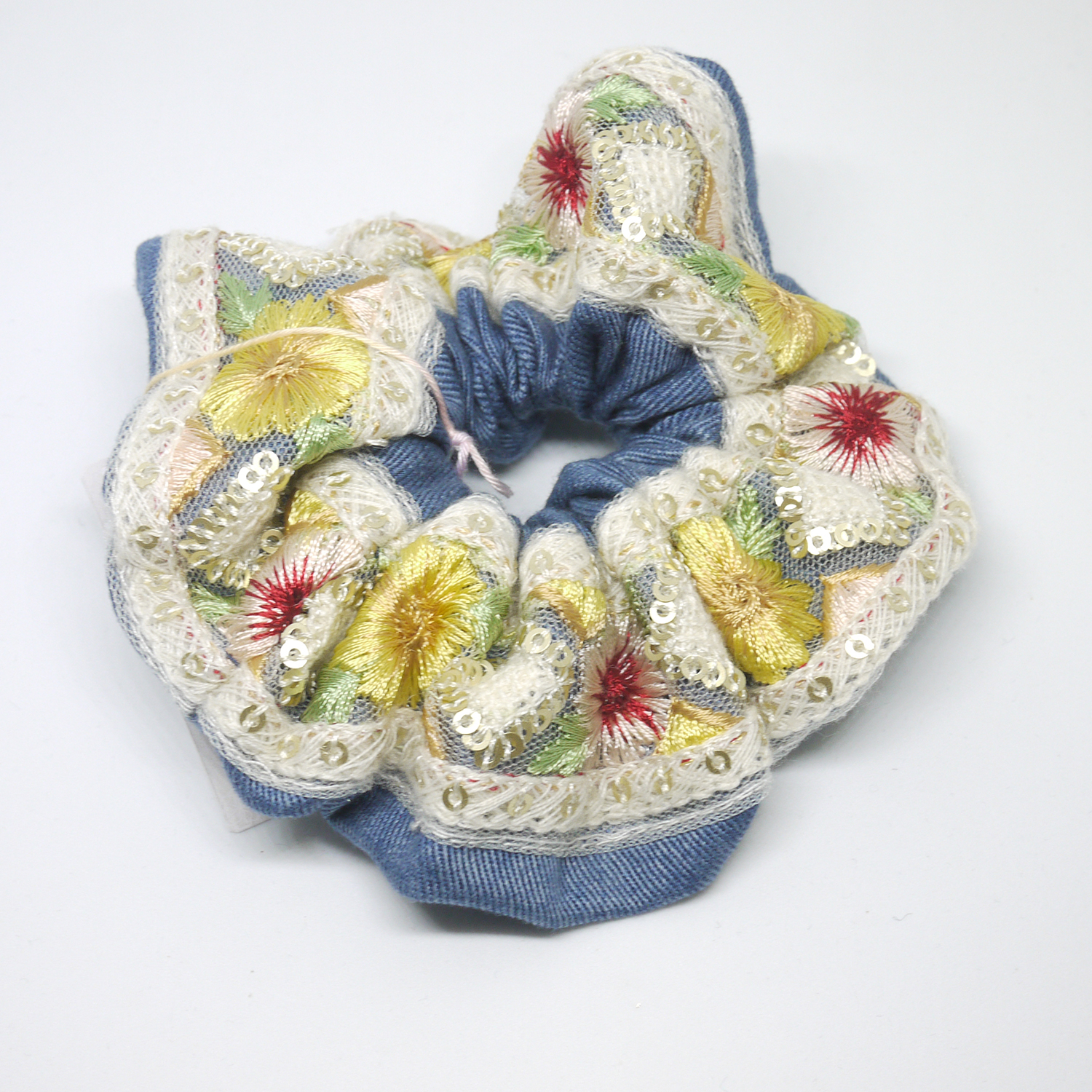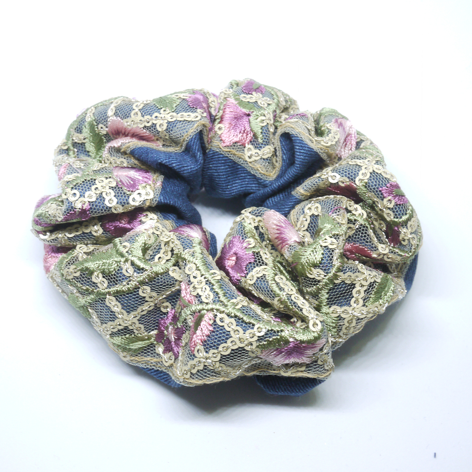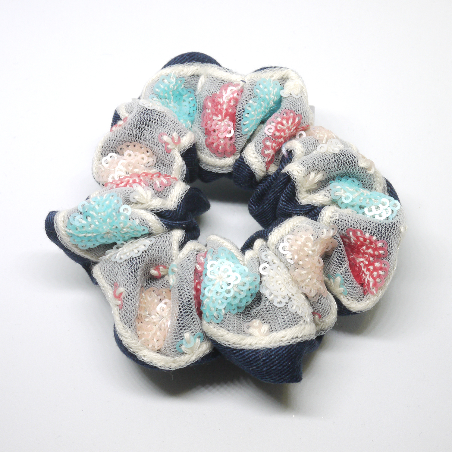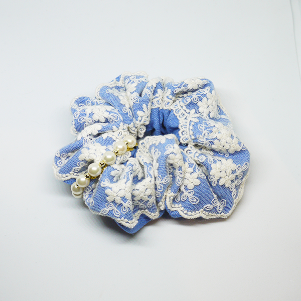 044 キュプラ×レースシュシュ(サテンリボン付き)