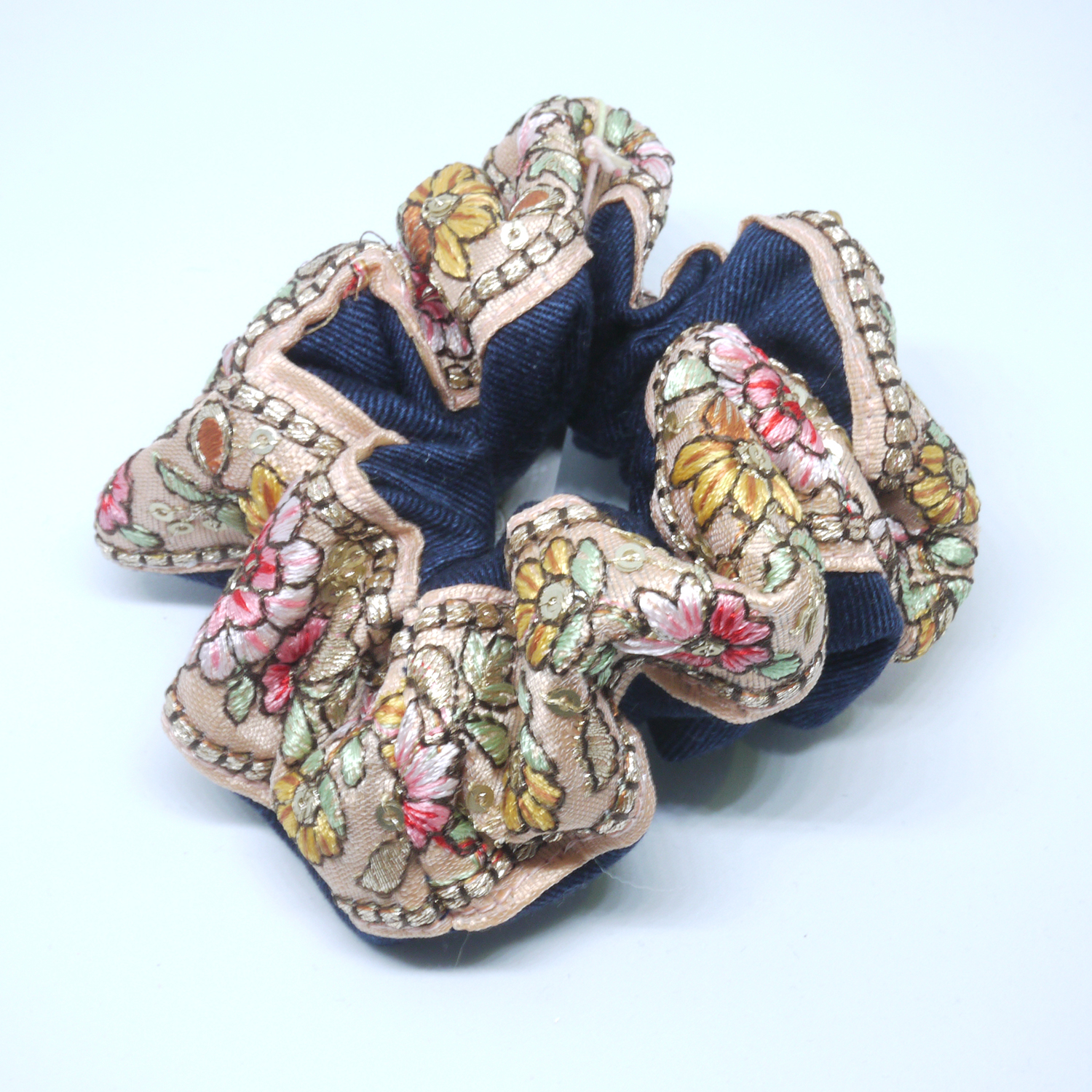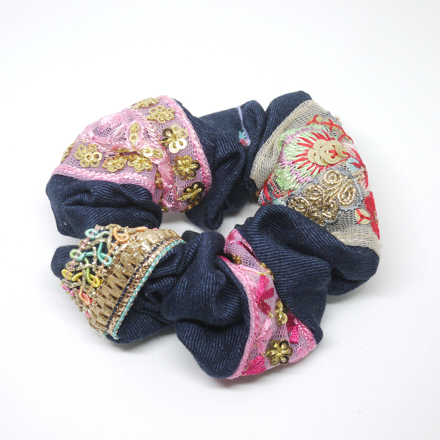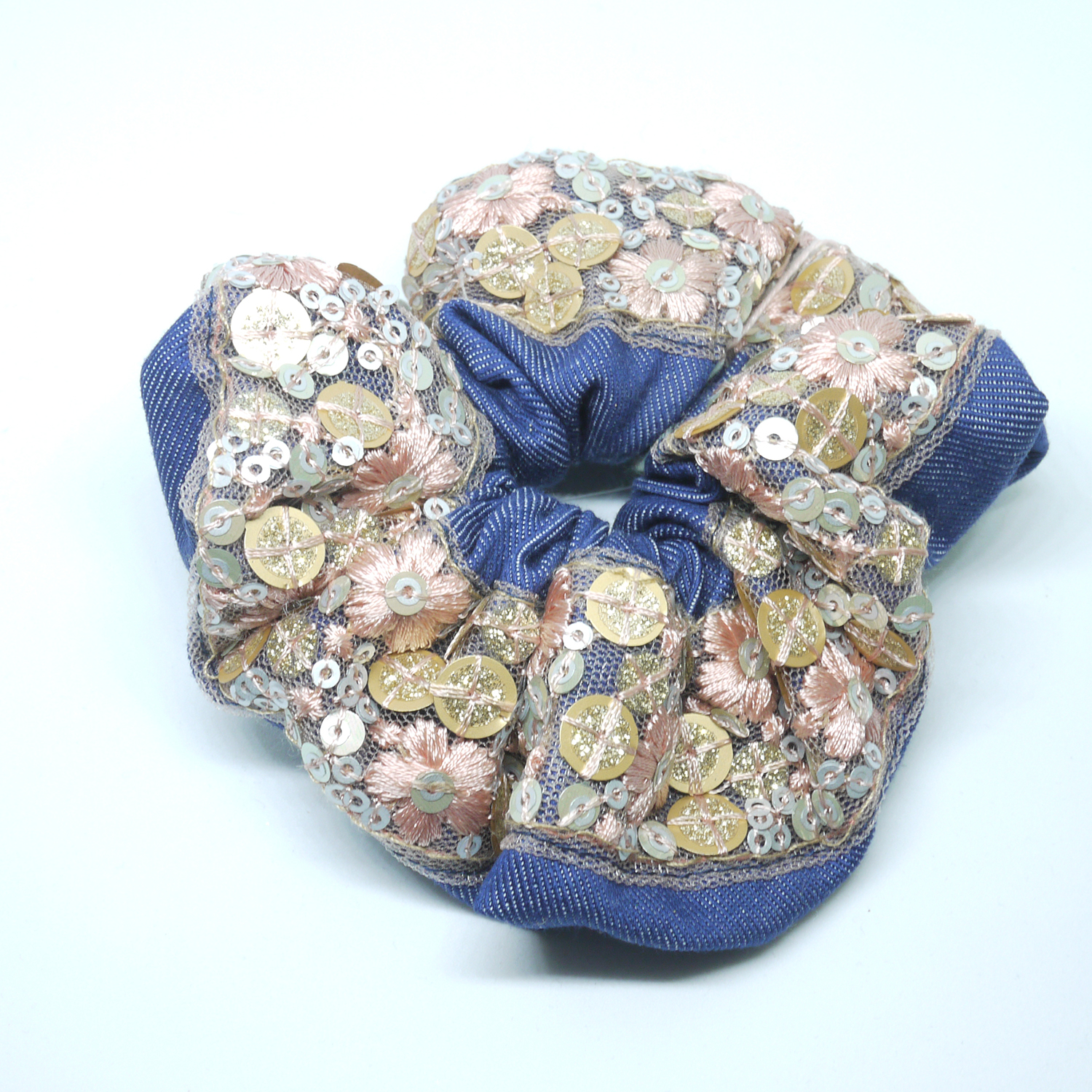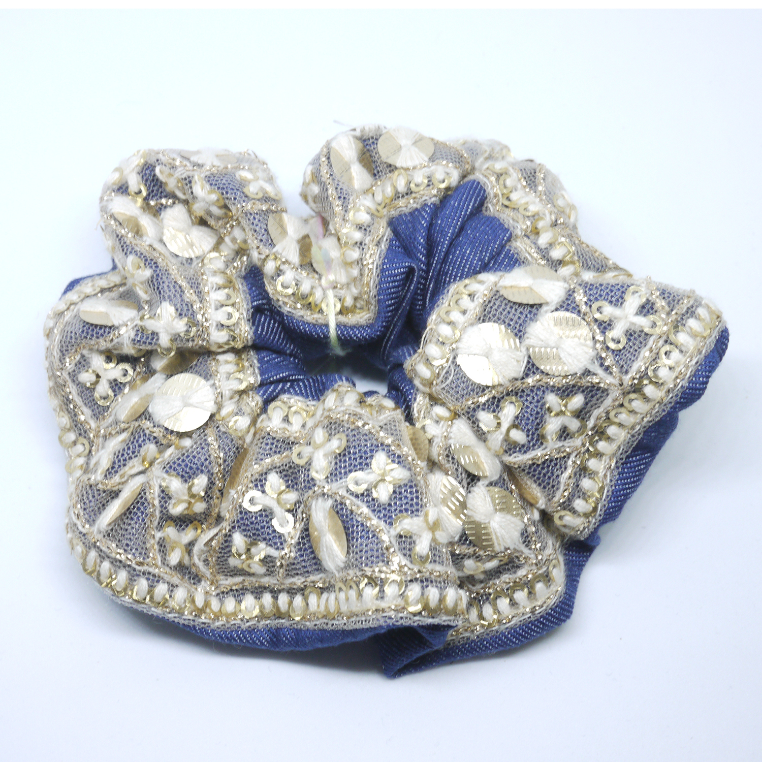 044 キュプラ×レースシュシュ(サテンリボン付き)