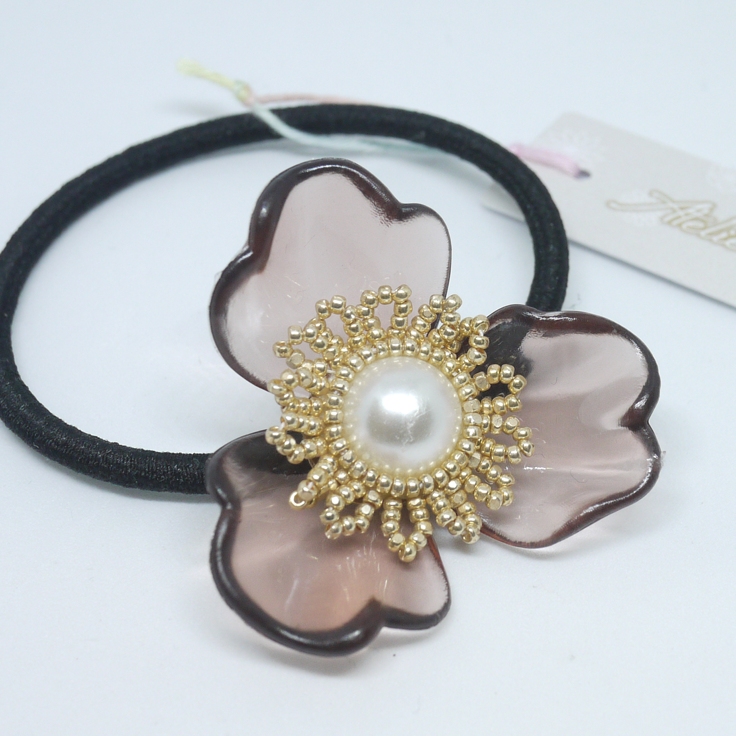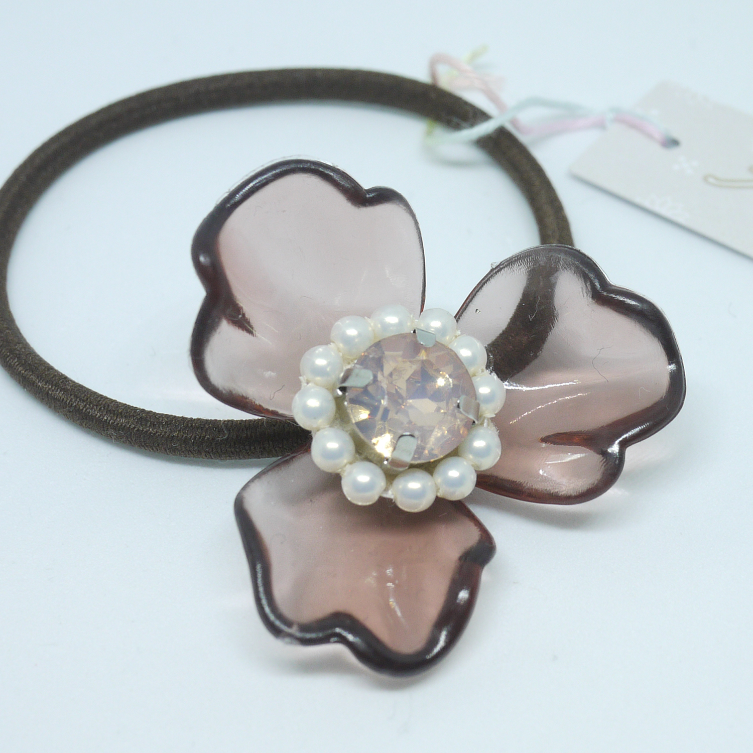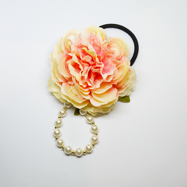 029 大きなお花のヘアゴム/ピンク(取り外し可能チャーム付き)