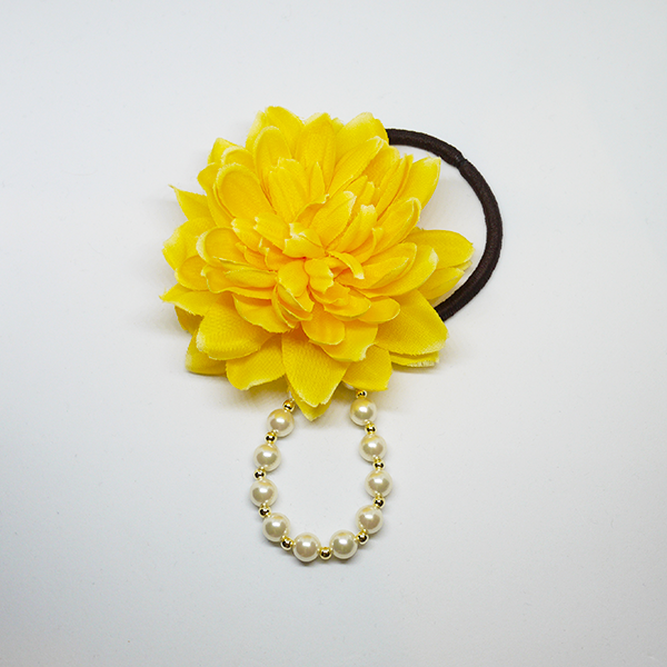 029 大きなお花のヘアゴム/イエロー(取り外し可能チャーム付き)