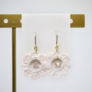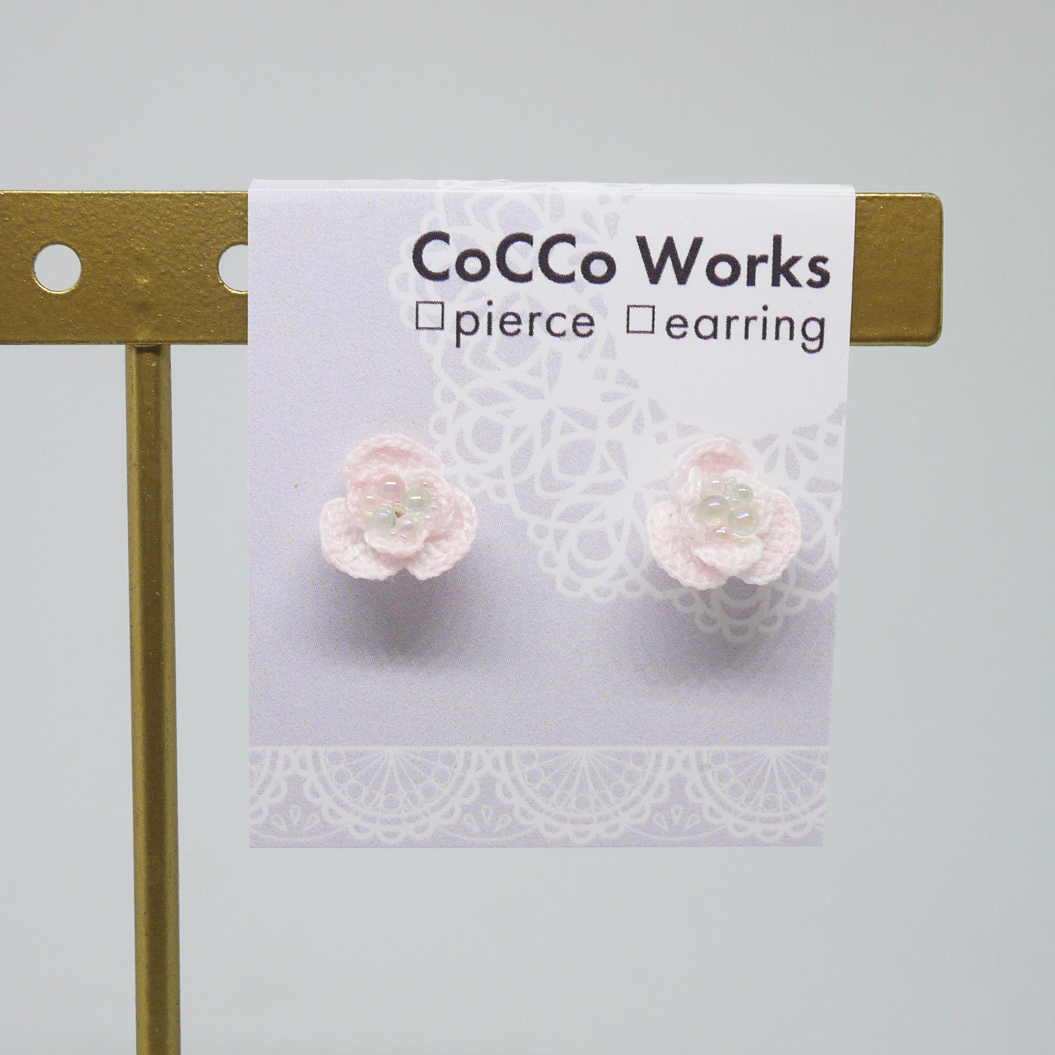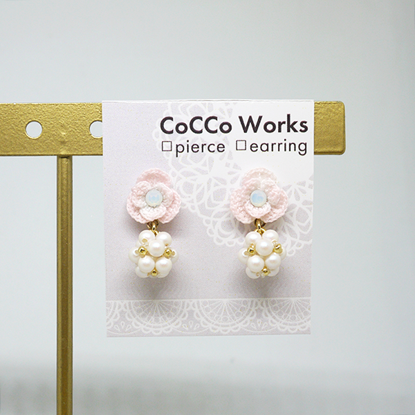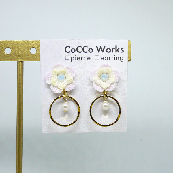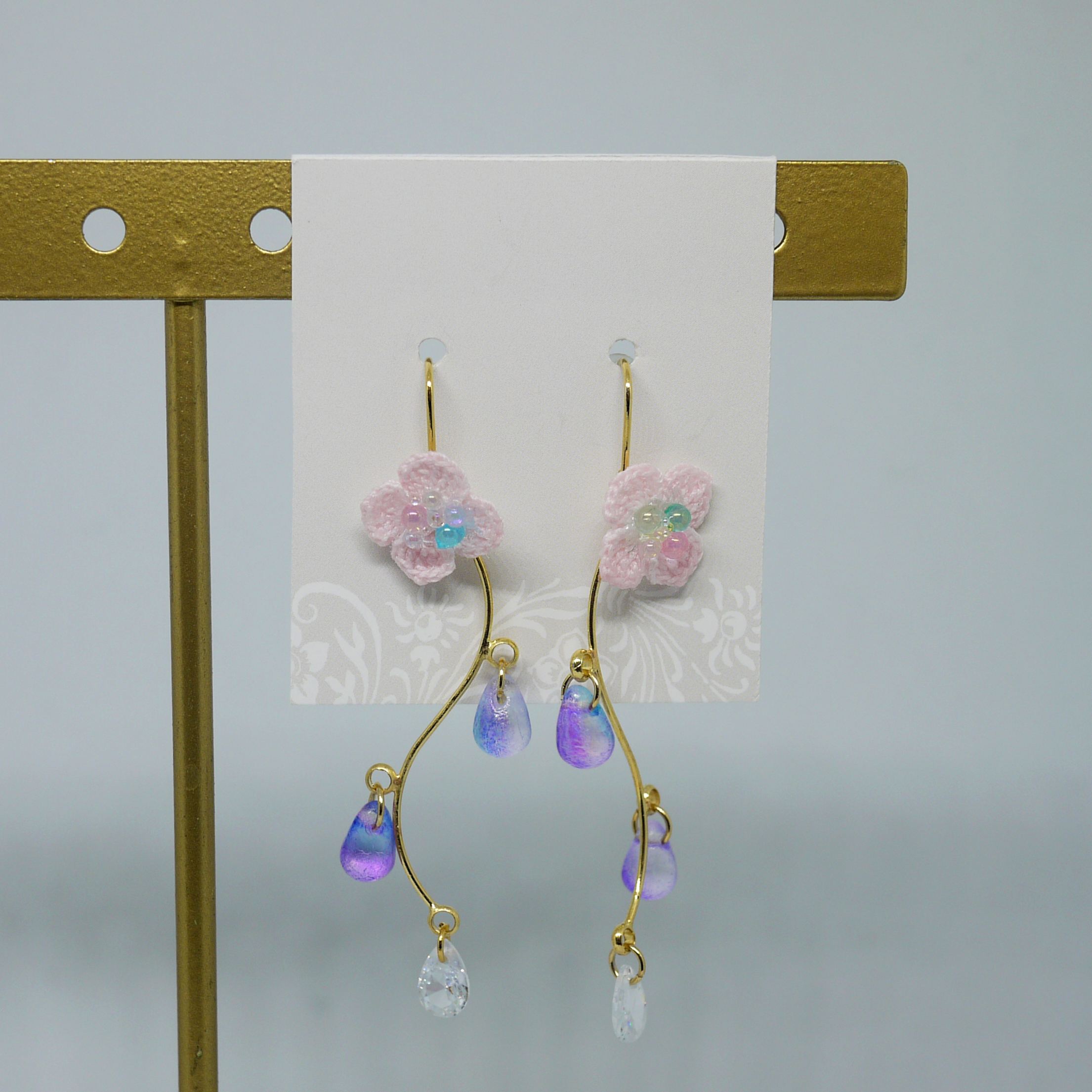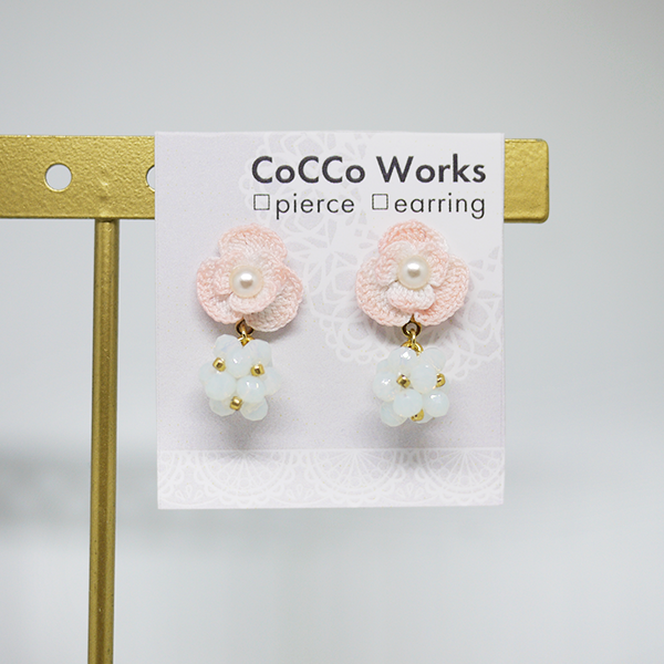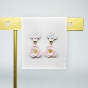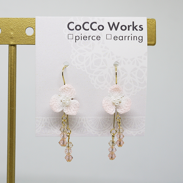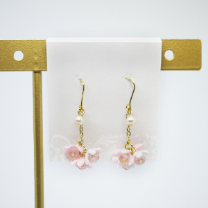 034 フラワーピアス(フックタイプ/薄ピンク×bubble)