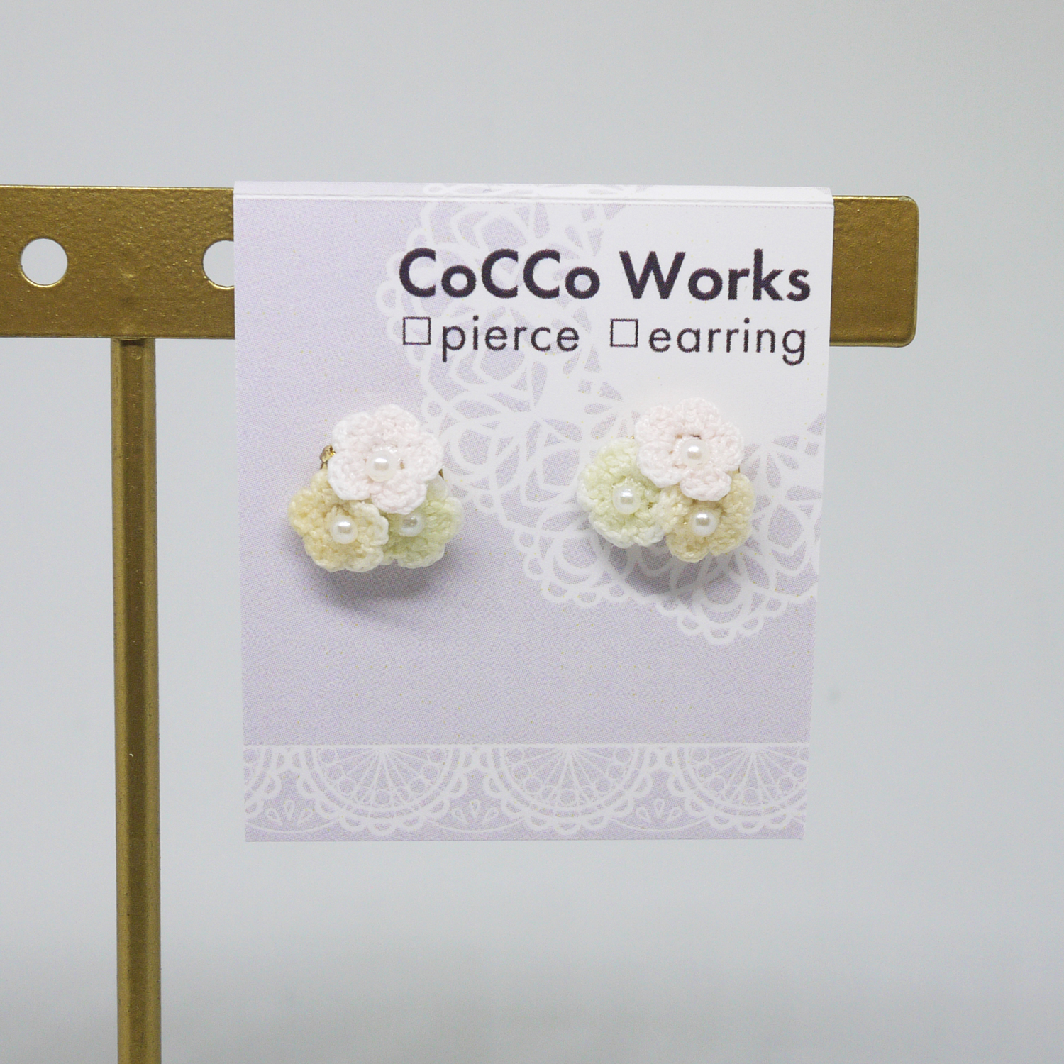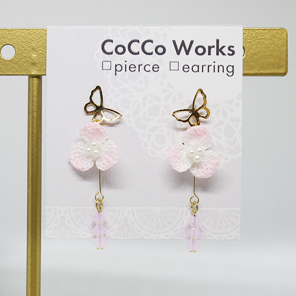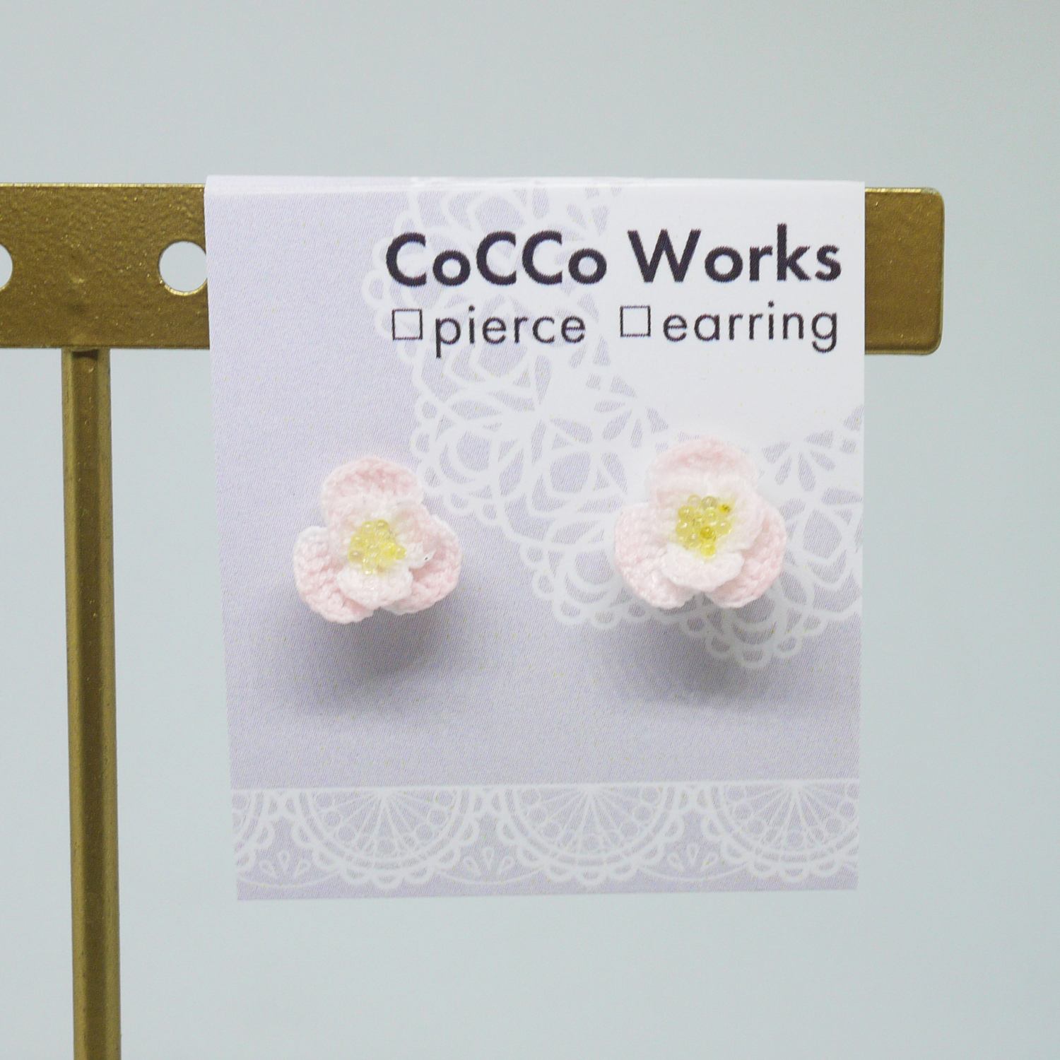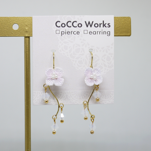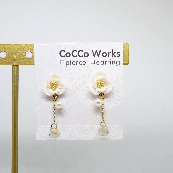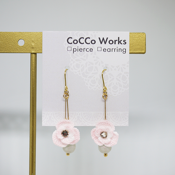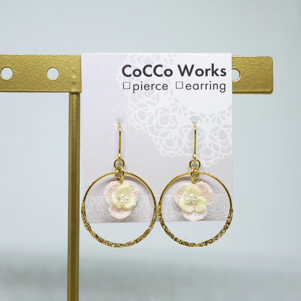 034 フラワーピアス(フックタイプ/薄ピンク×bubble)