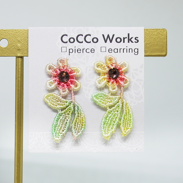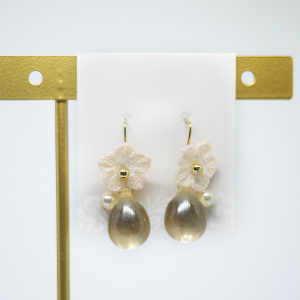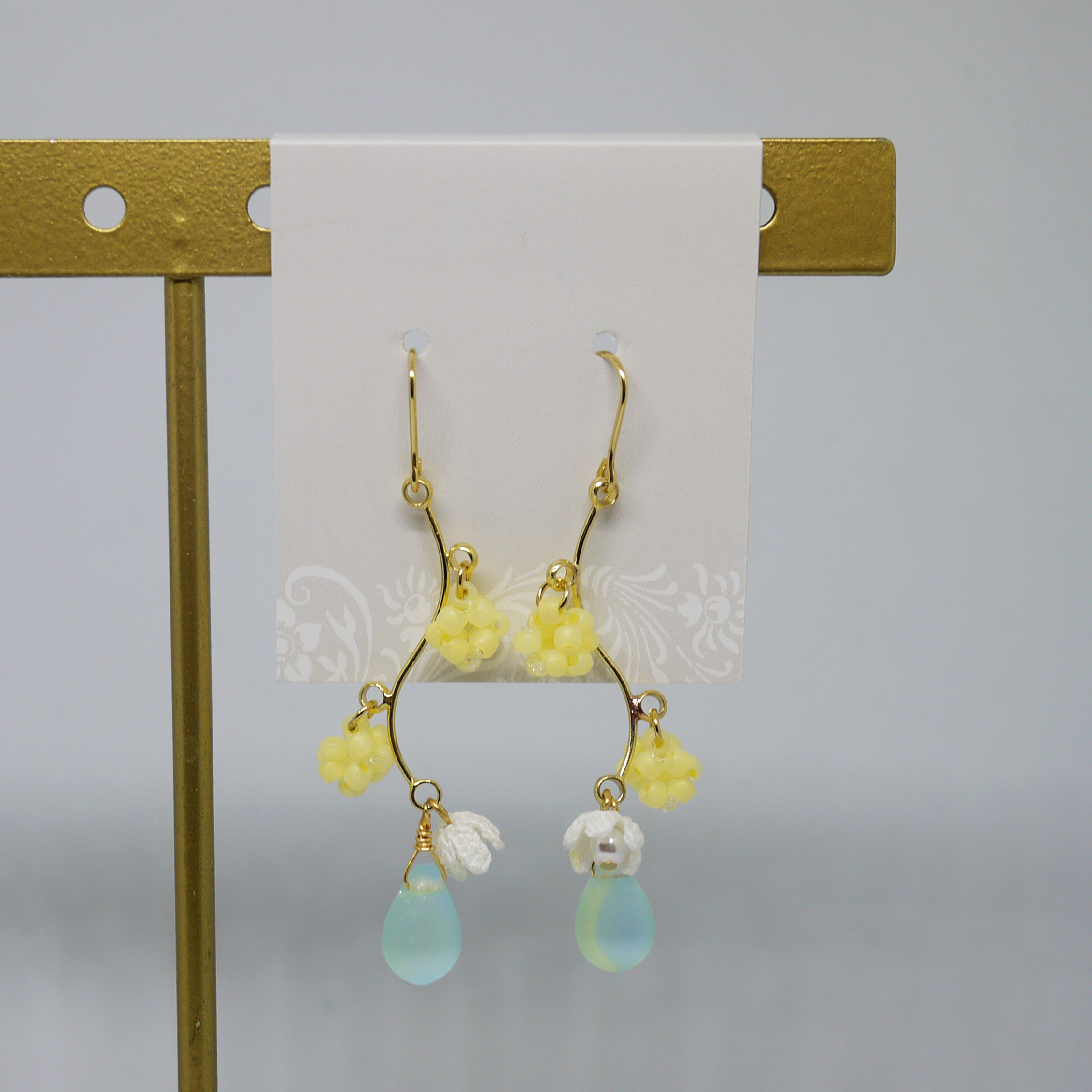 037 フラワーピアス(フックタイプ/イエロー×bubble)