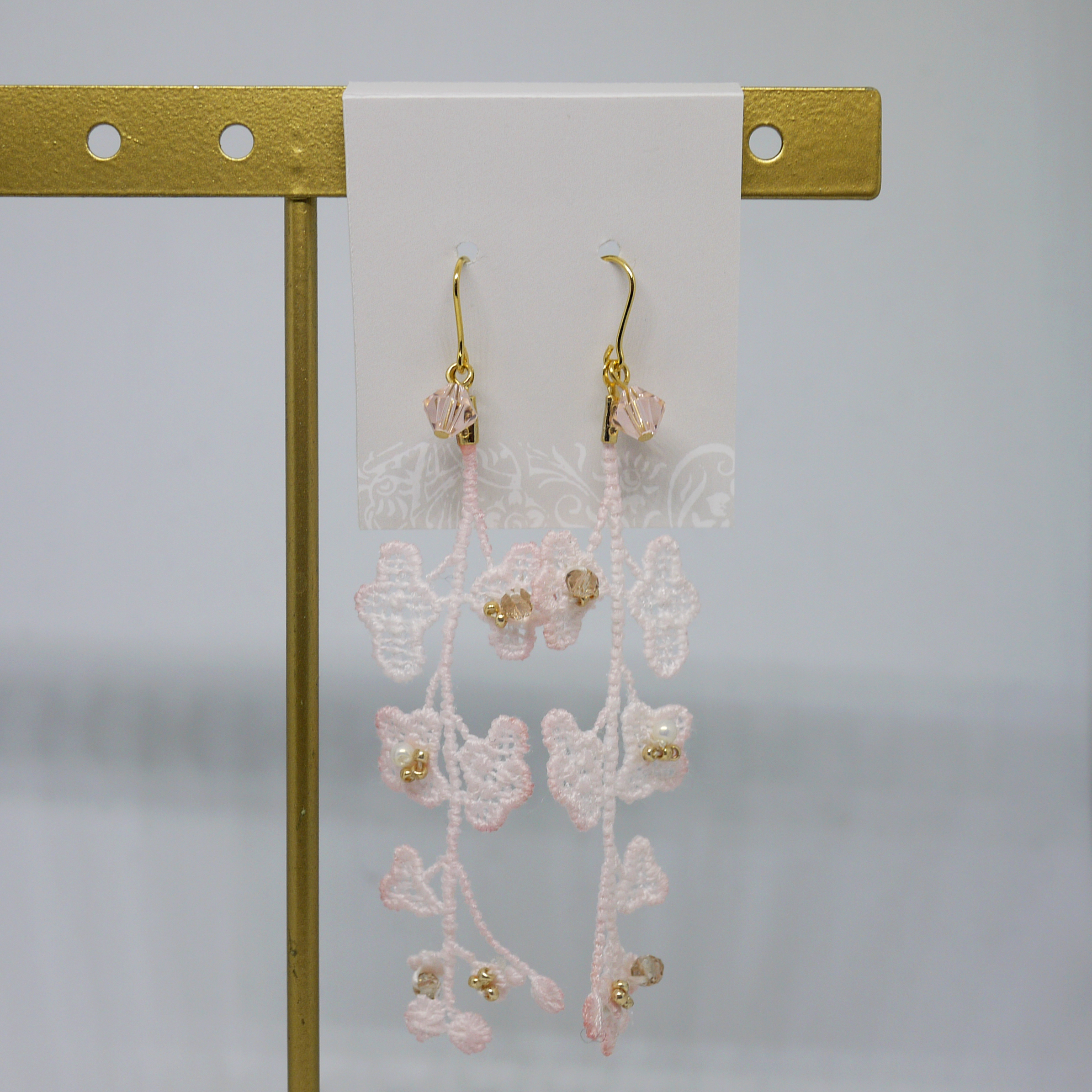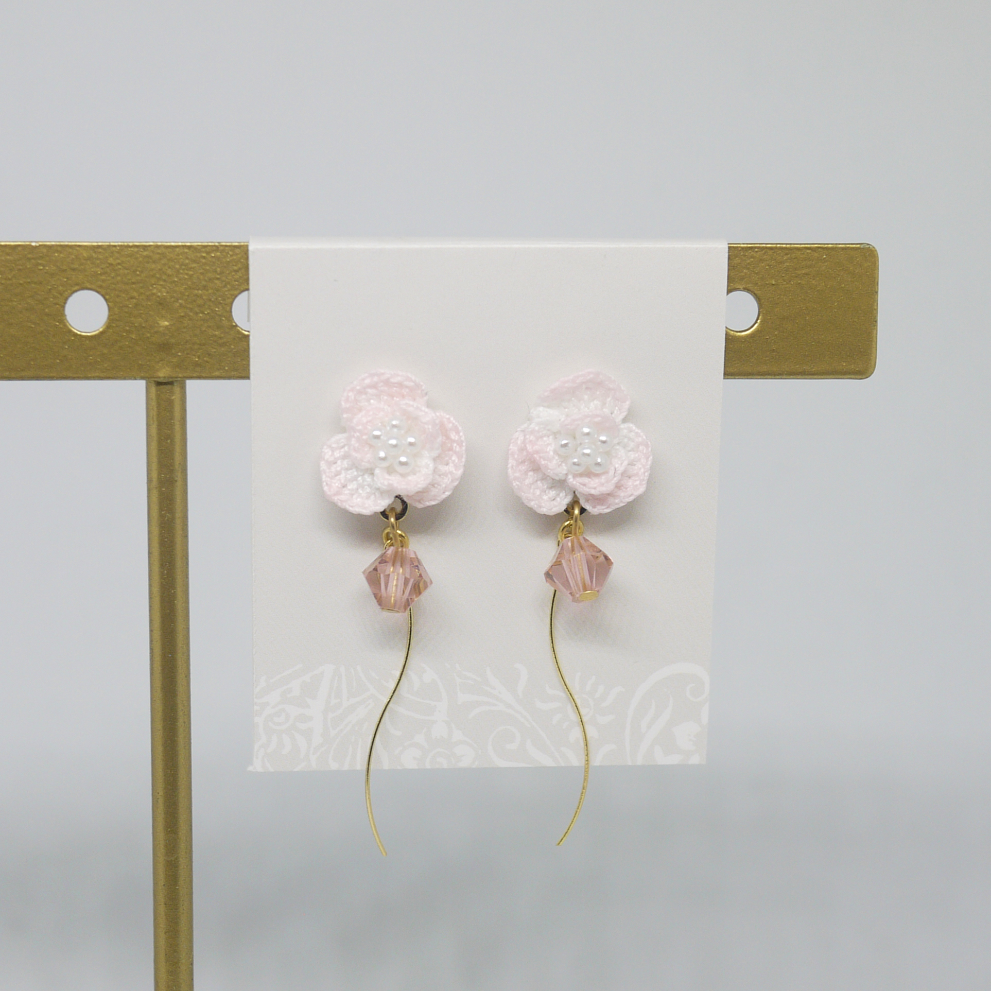066 フラワーロングピアス(ピンク/スワロフスキー)