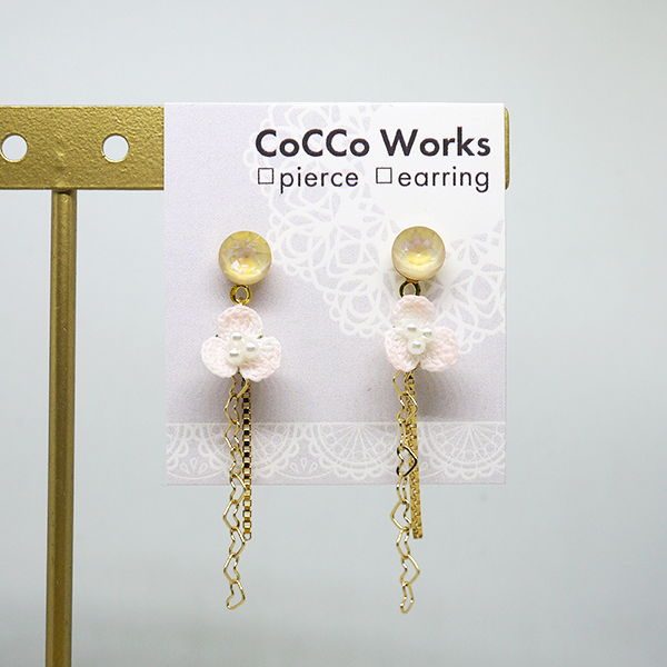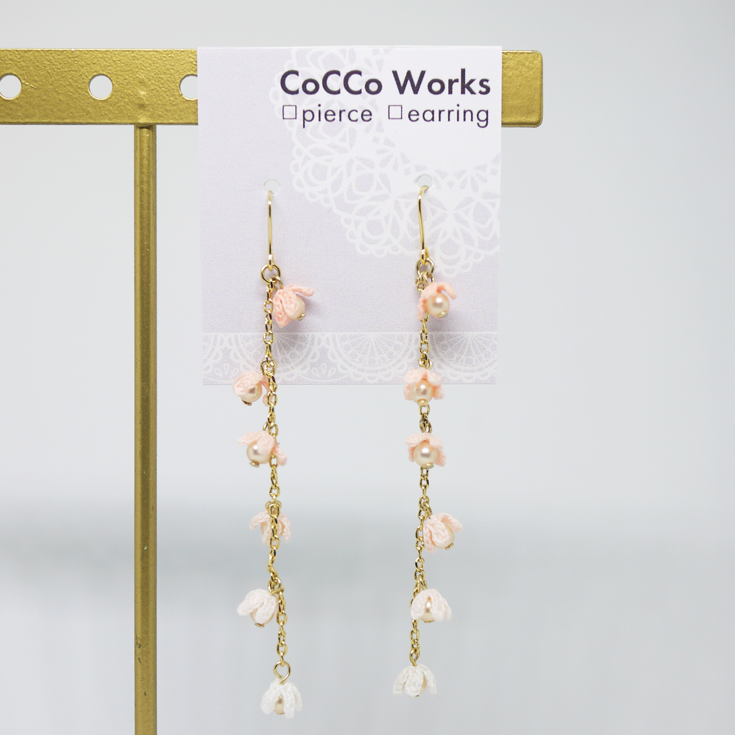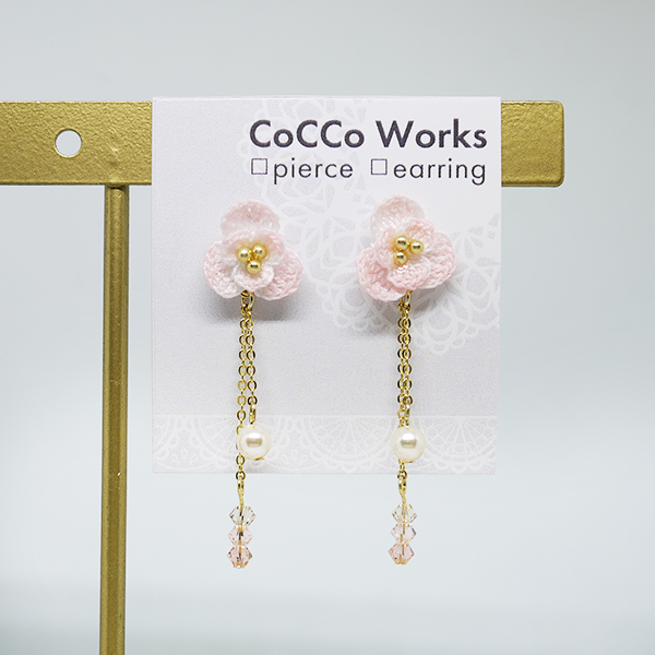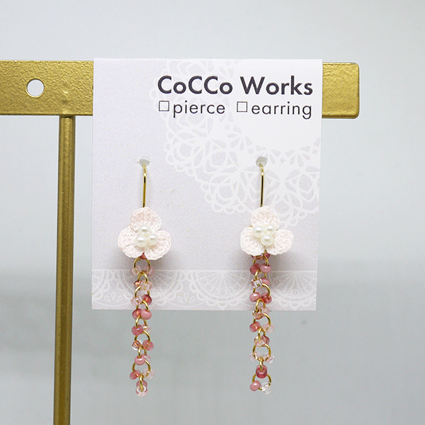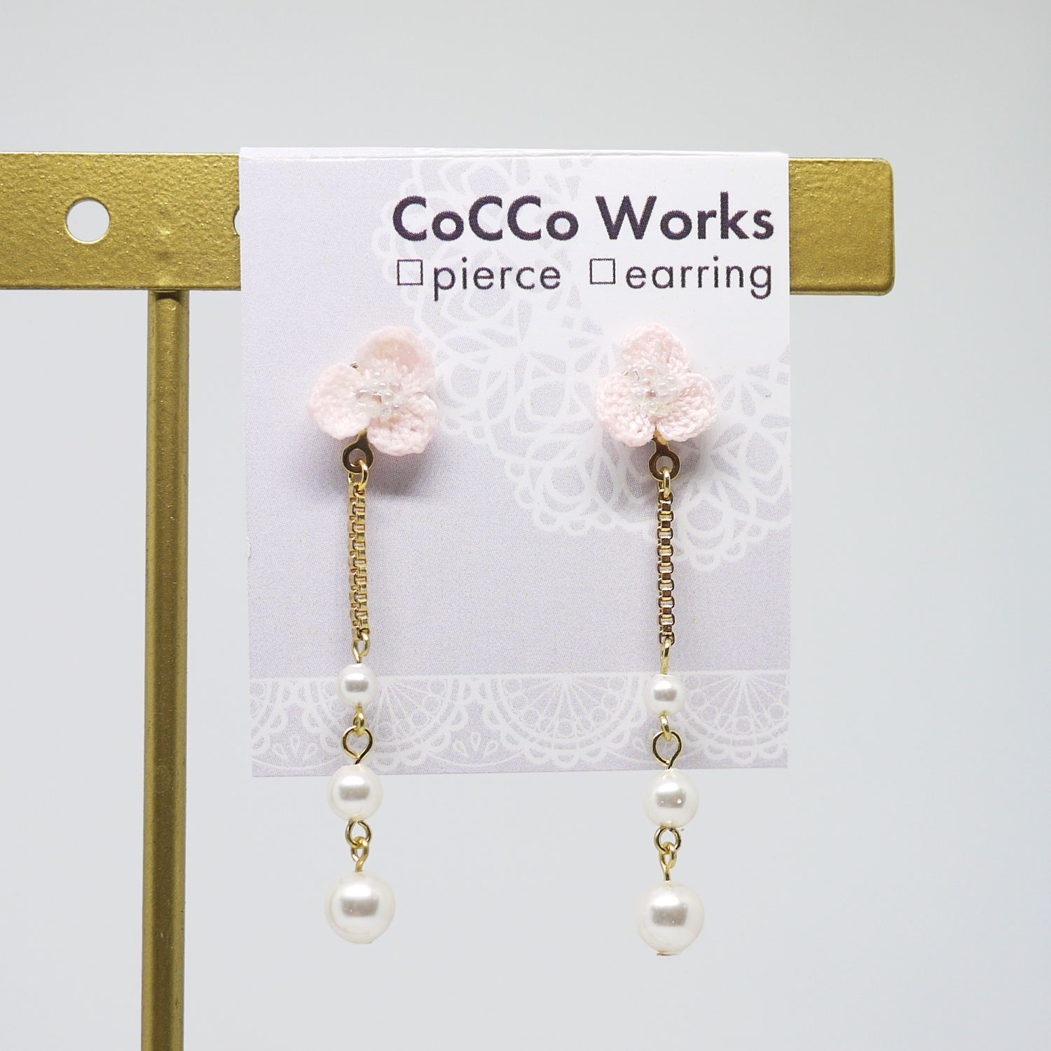 082 ビーズチェーンとお花のピアス(ピンク/艶消し)