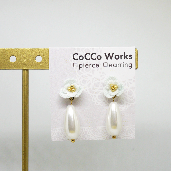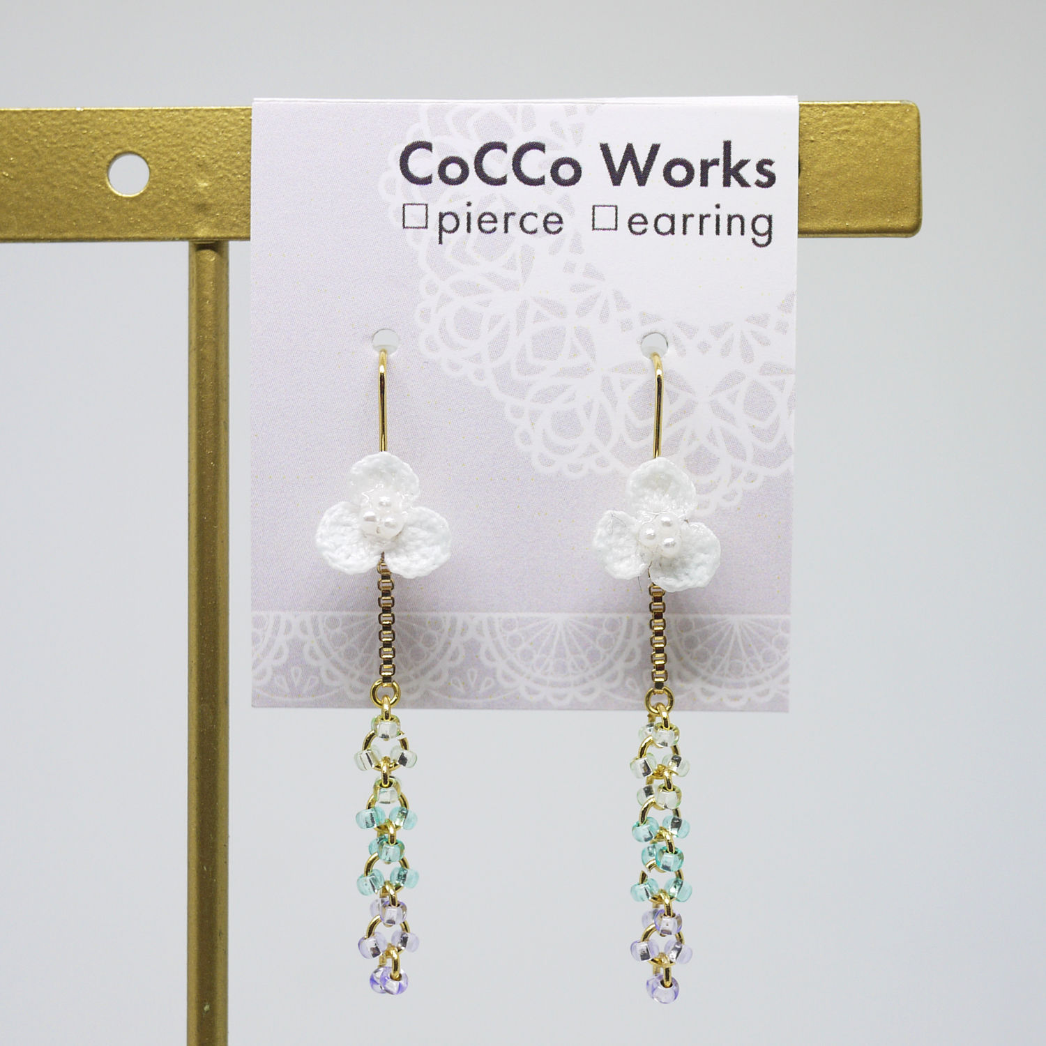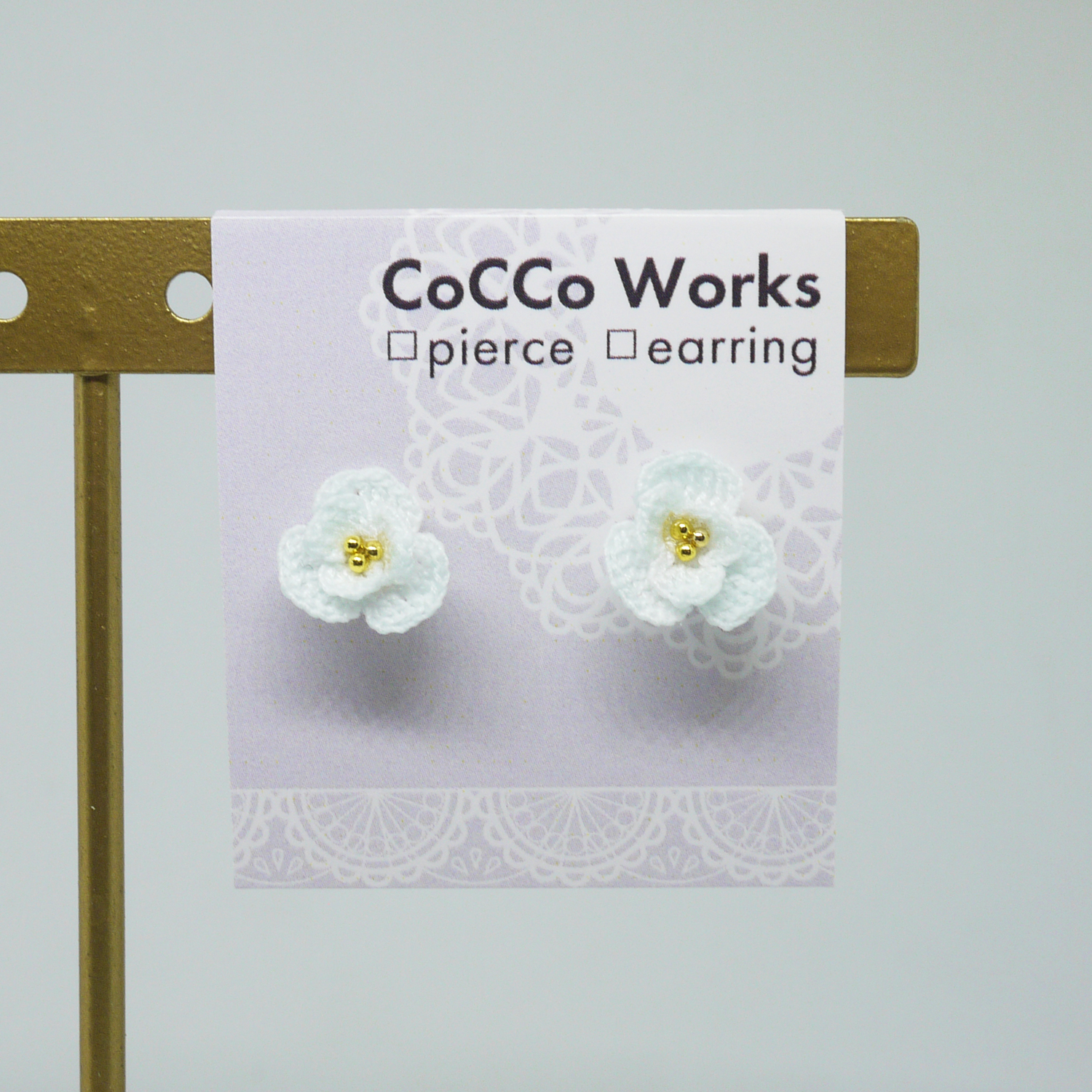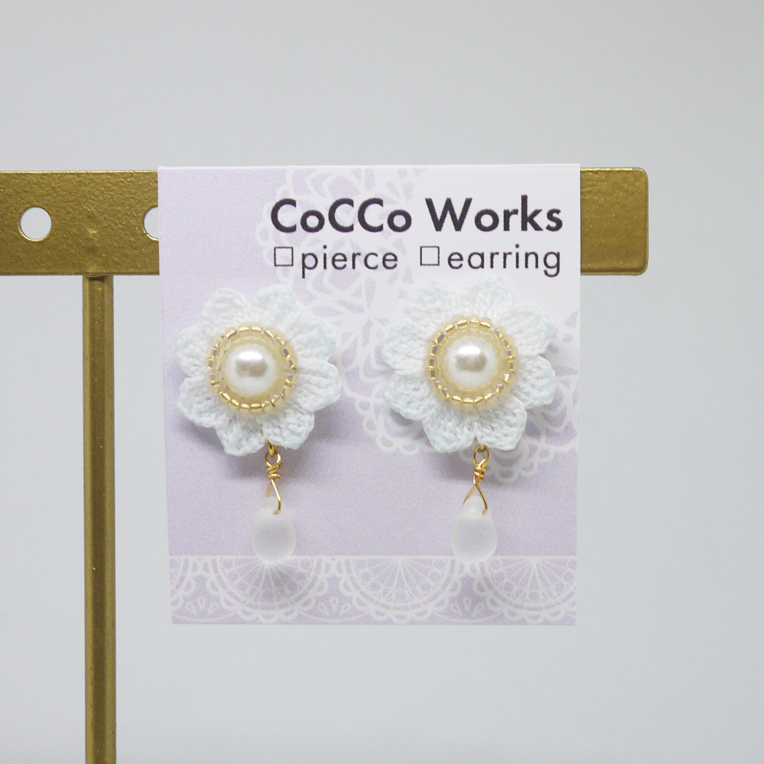 023 お花ピアス(スワロ/ホワイト/ビーズボール)