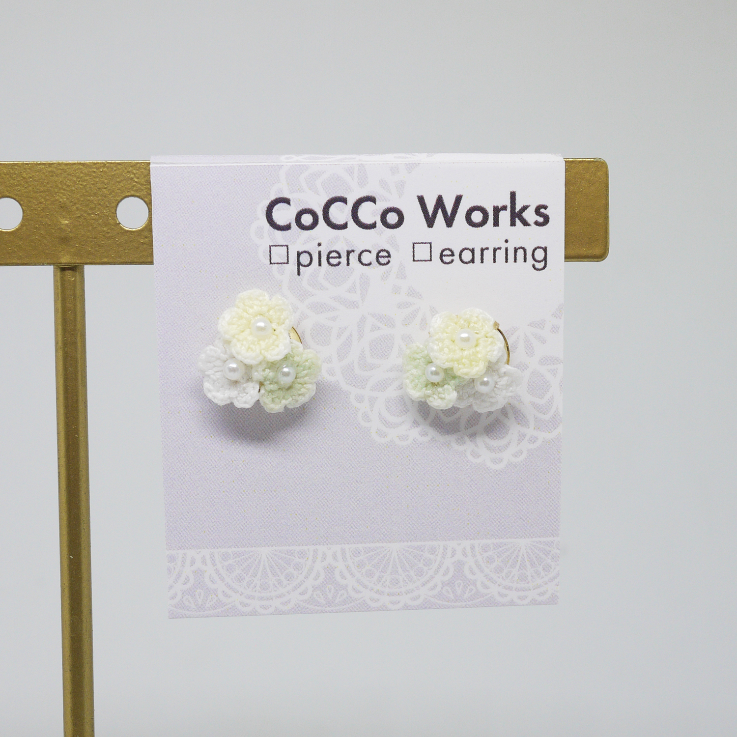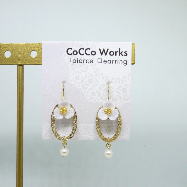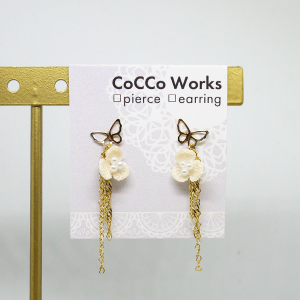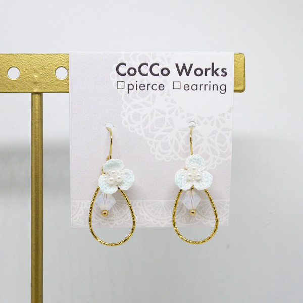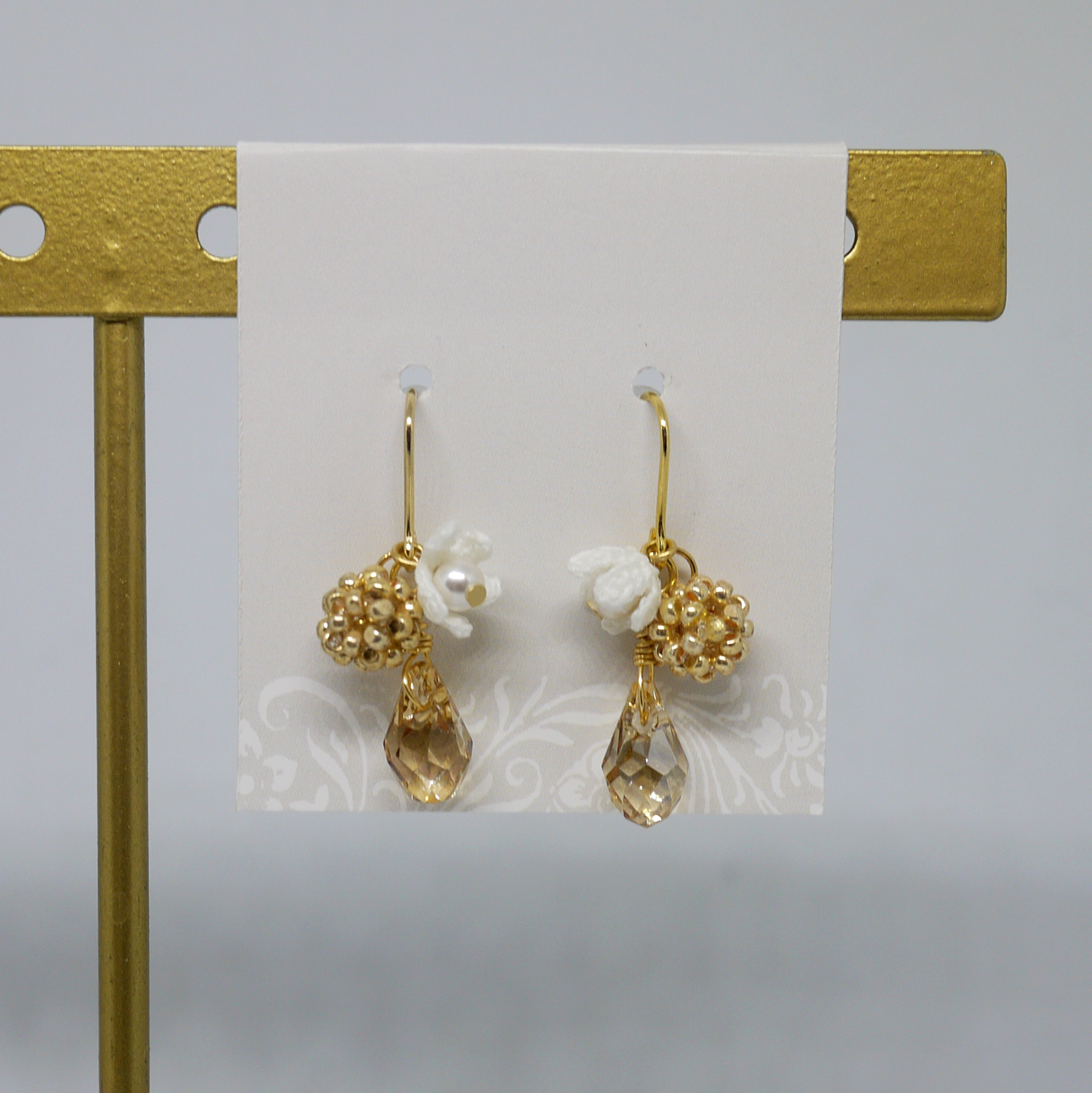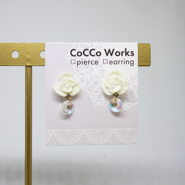 023 お花ピアス(スワロ/ホワイト/ビーズボール)