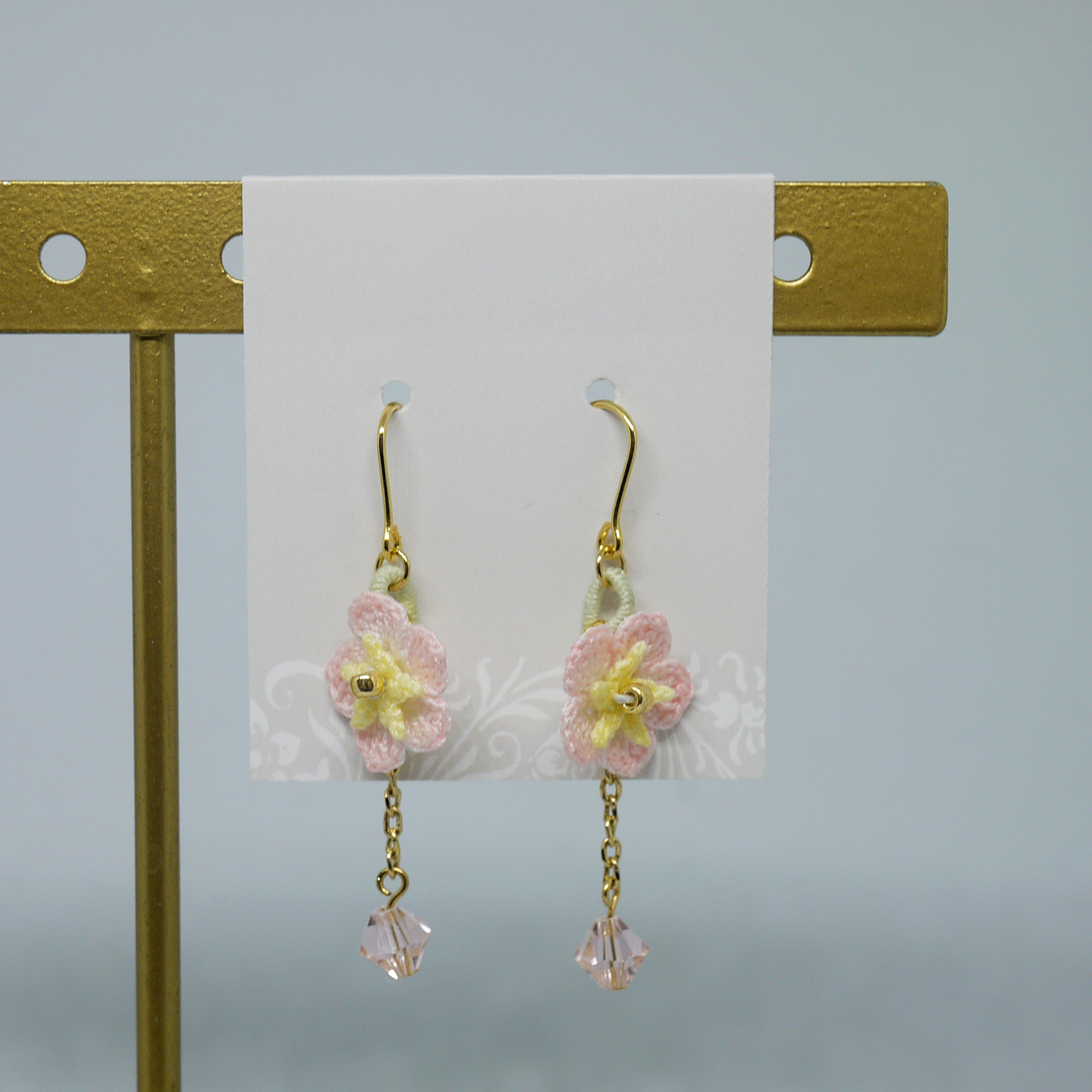 035 フラワーピアス(フックタイプ/薄ピンク×イエローつぶつぶ)