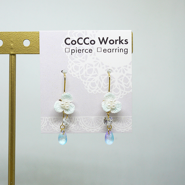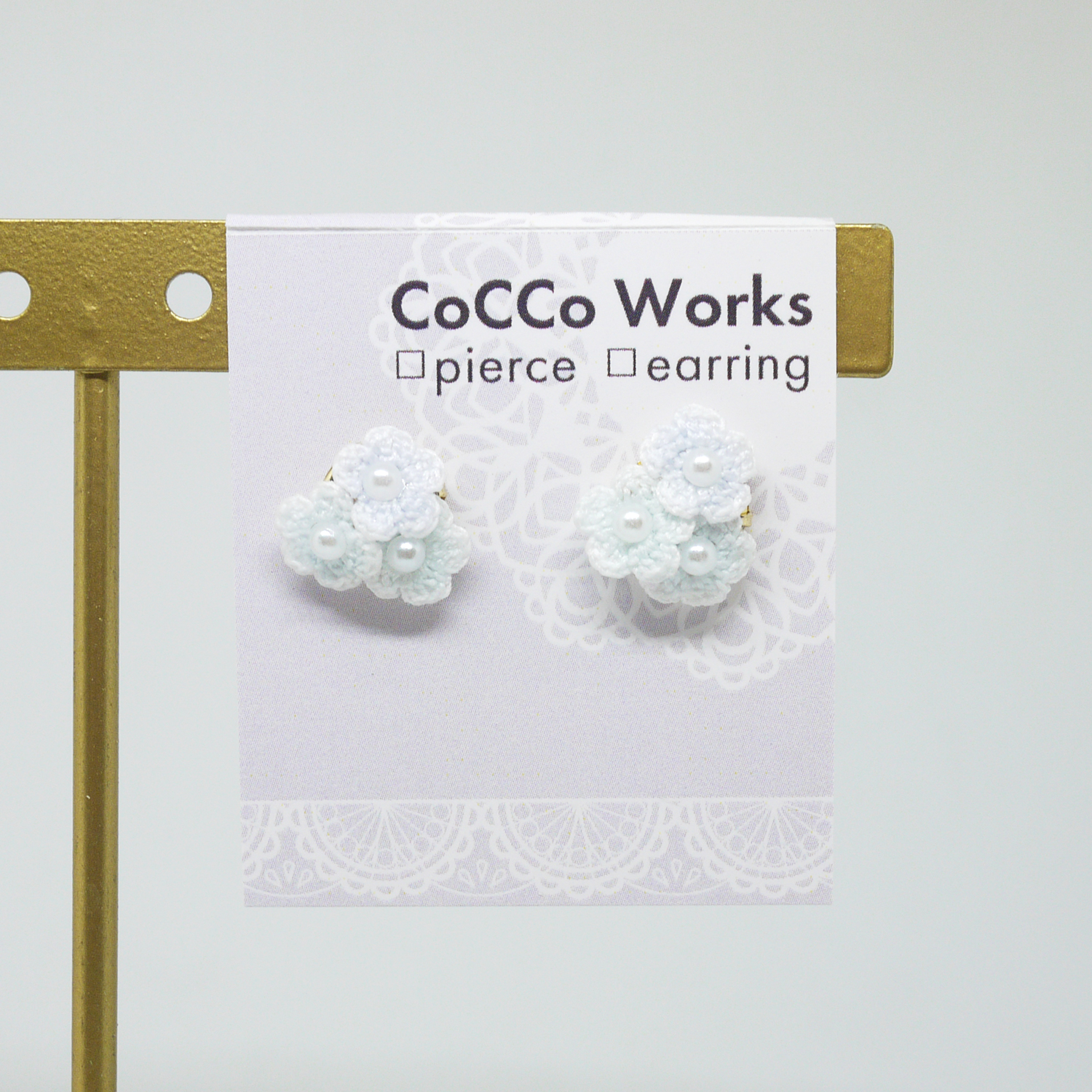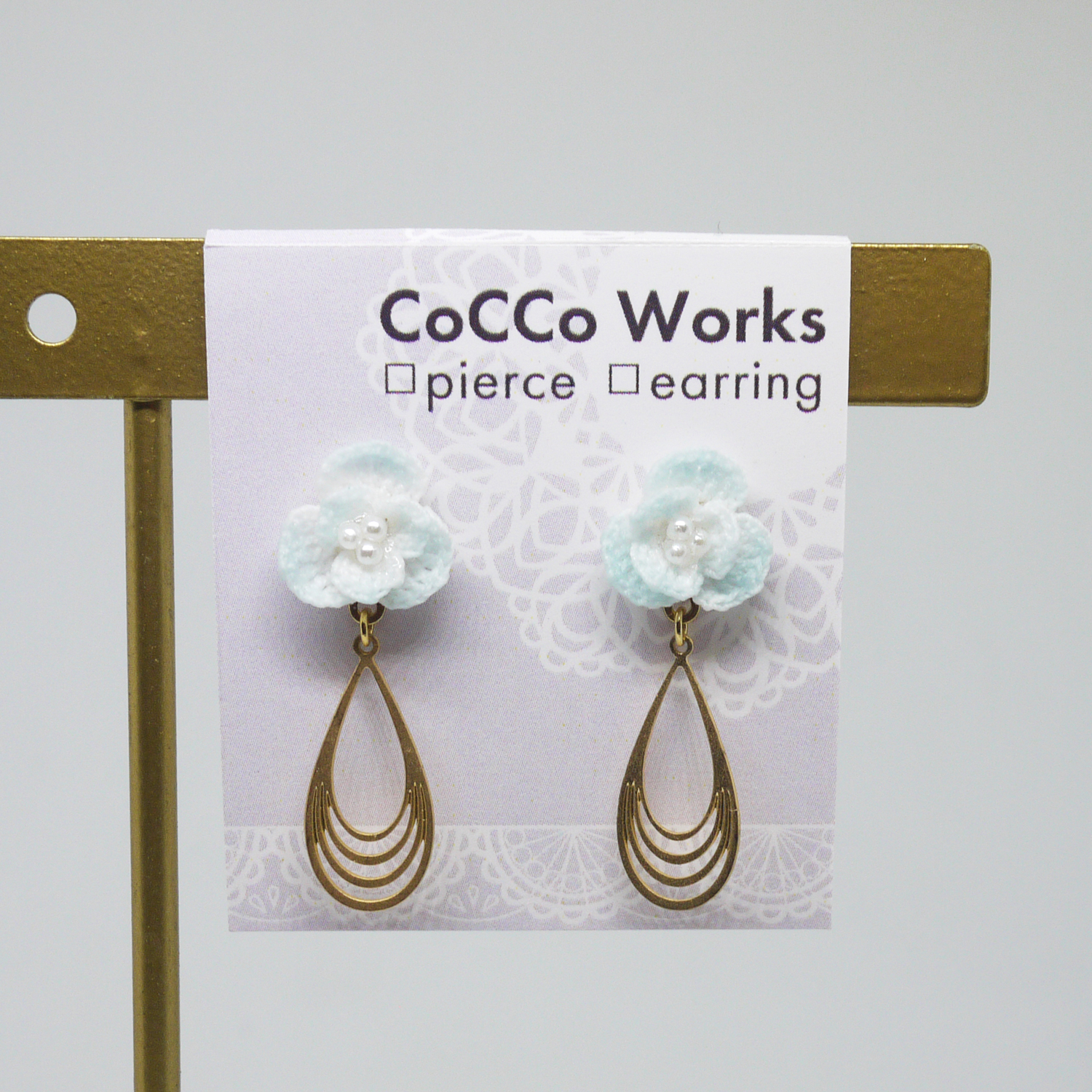 031 フラワーピアス(薄ブルー/透かしパーツ)