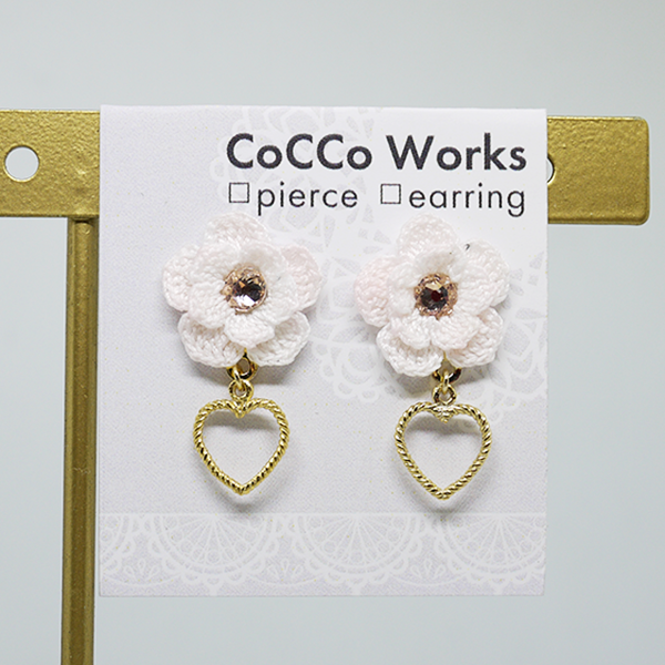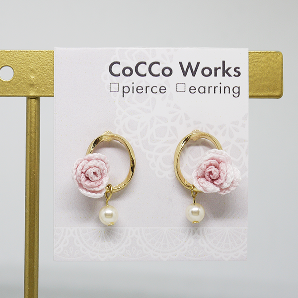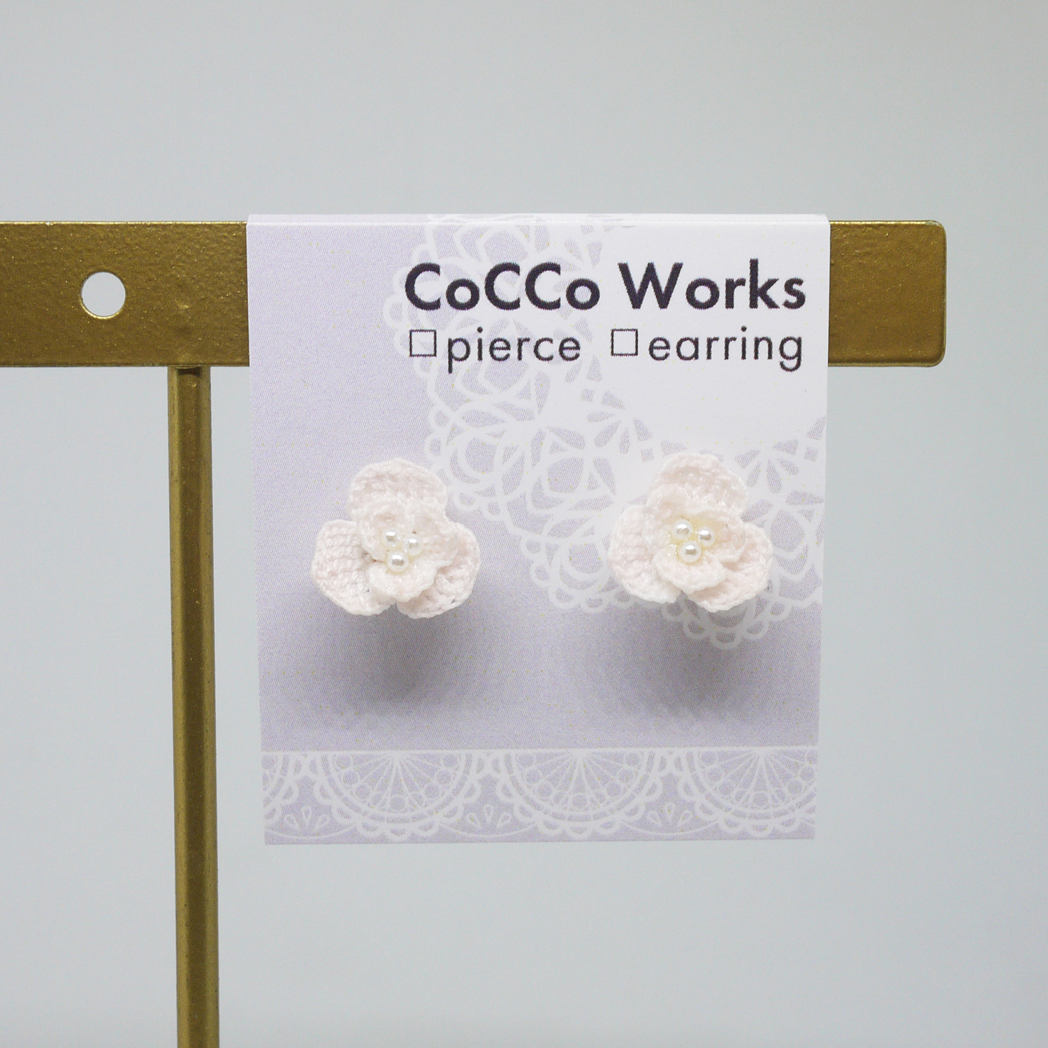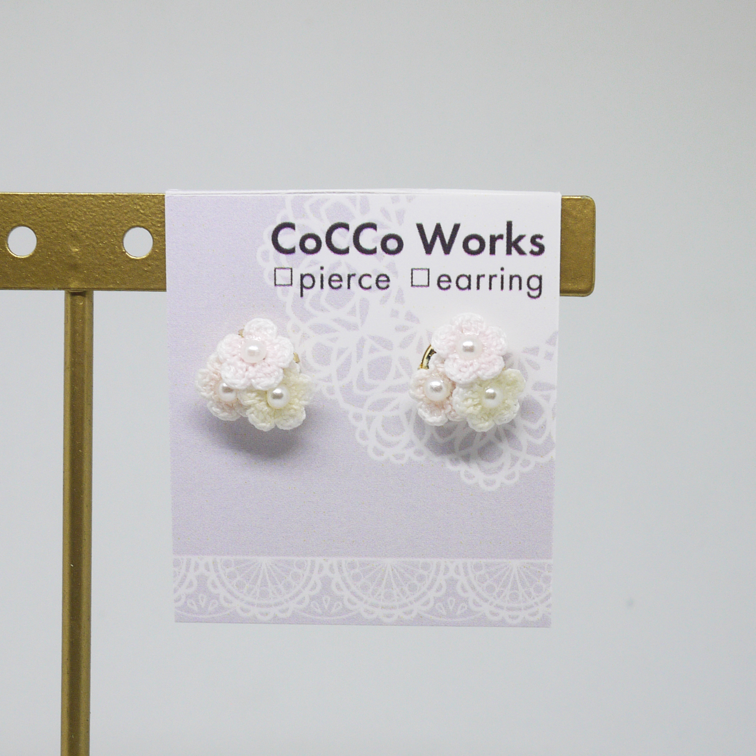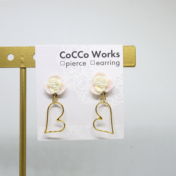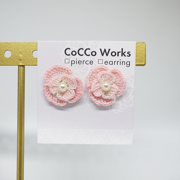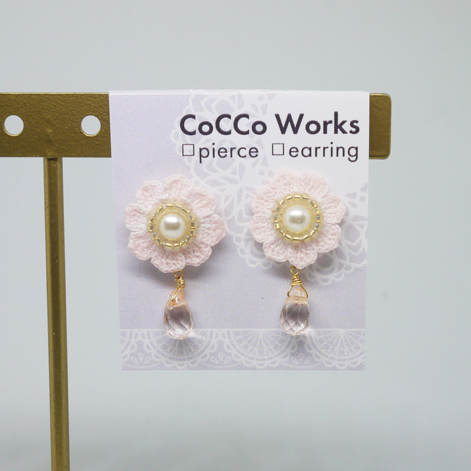 029 フラワーピアス(パール/薄ピンク/透かしパーツ)