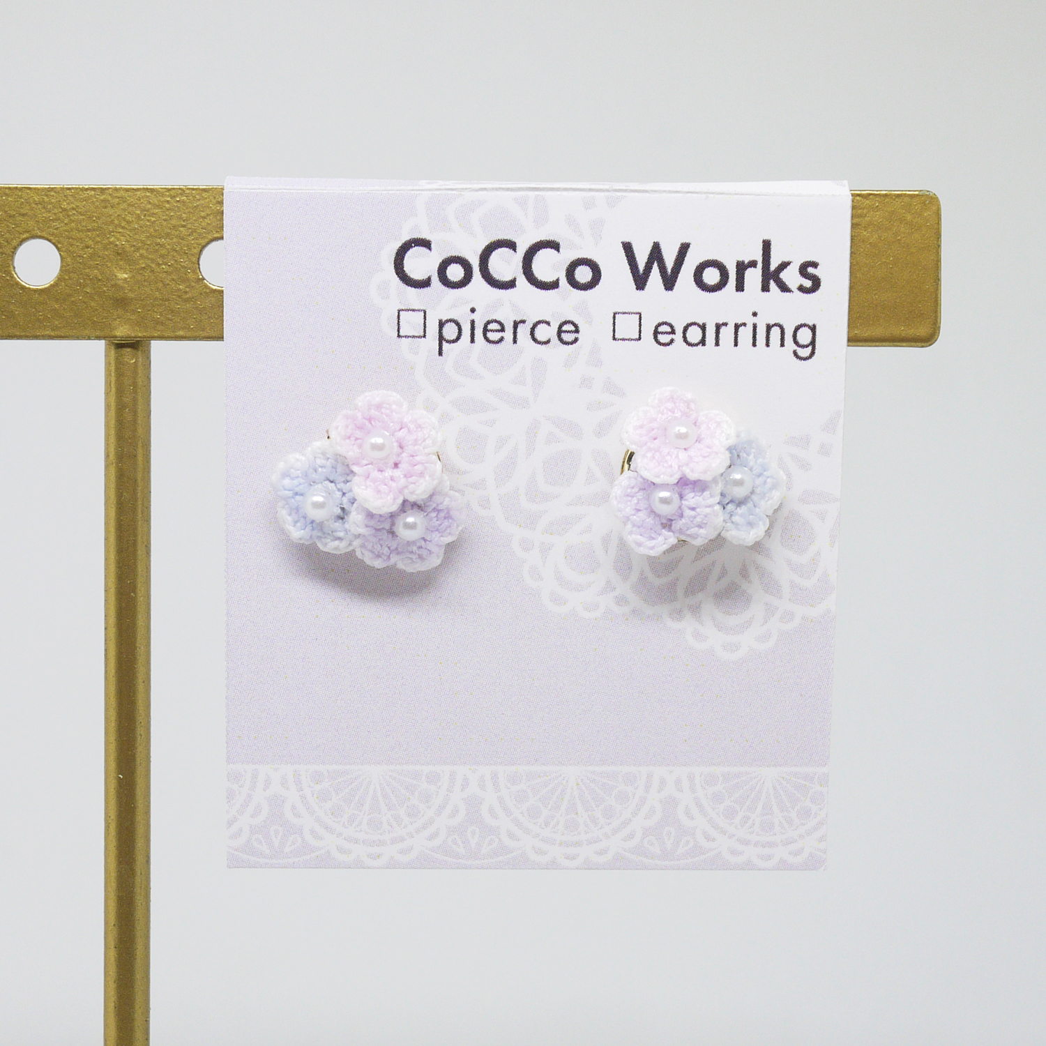 062 フラワービーズピアス(ブルー系/パール/紫陽花)