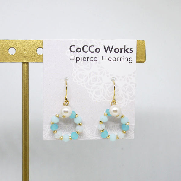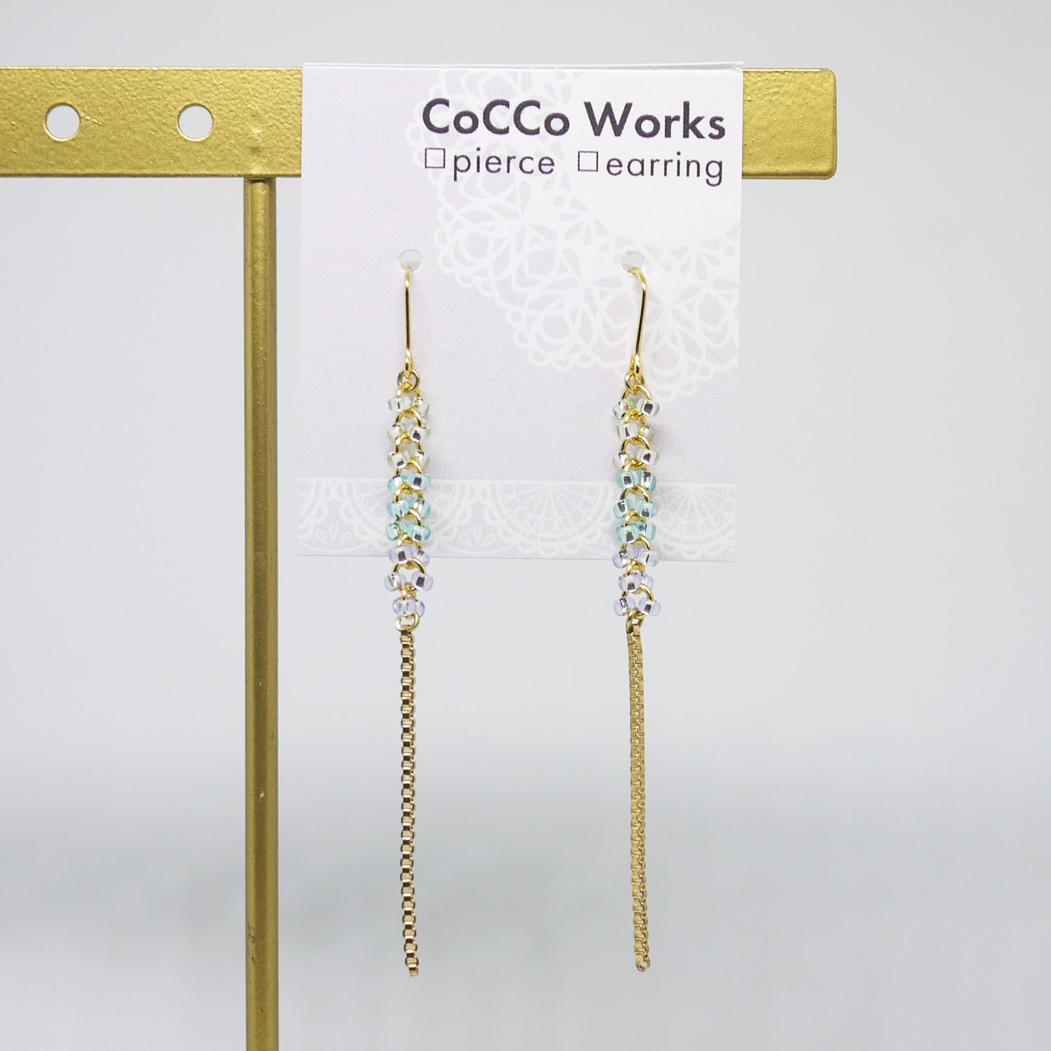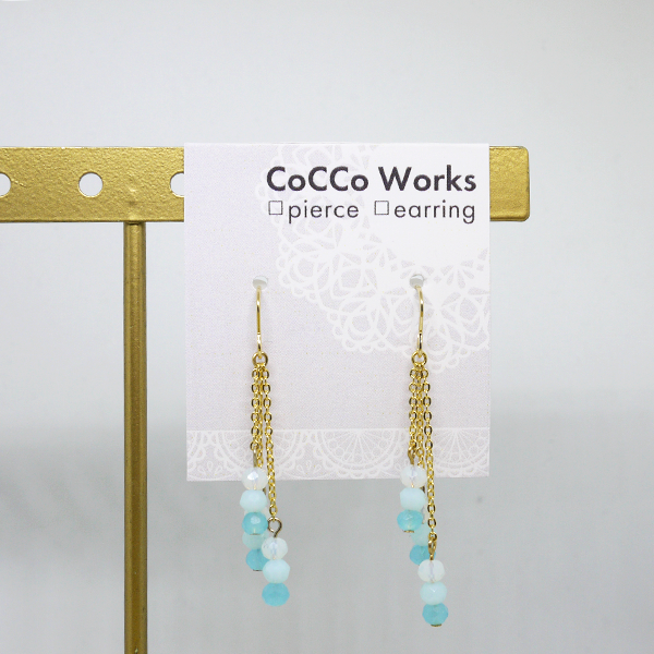 068 ビーズロングピアス(ブルー系3色/セレクトビーズ)