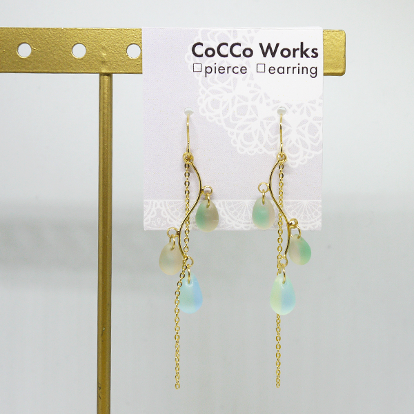 089 ビーズチェーンとお花のピアス(グリーン系ミックス)