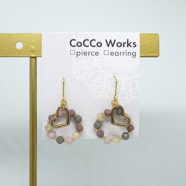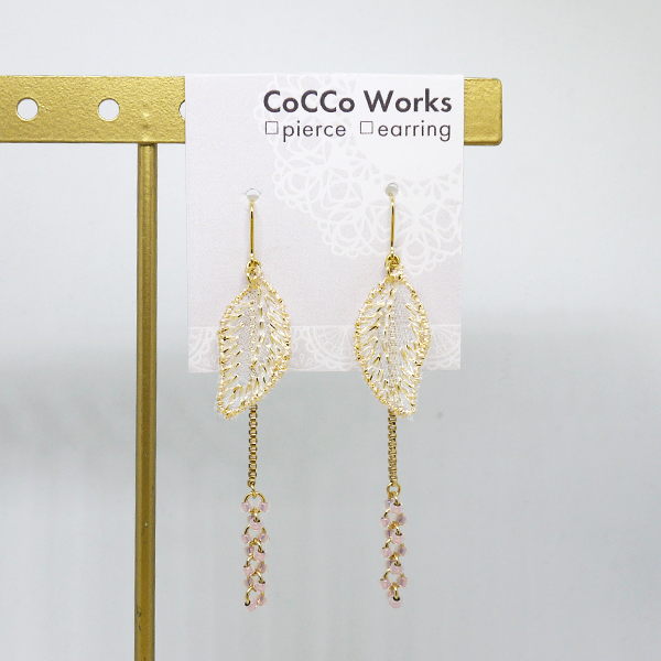 010 ビーズピアス(ピンクビーズボール/ゴールドモチーフ)