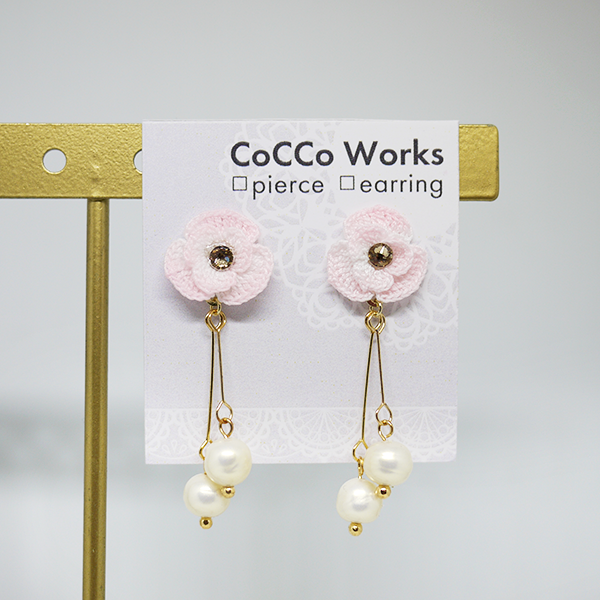 033 フラワーピアス(フックタイプ/薄ピンク×パール)